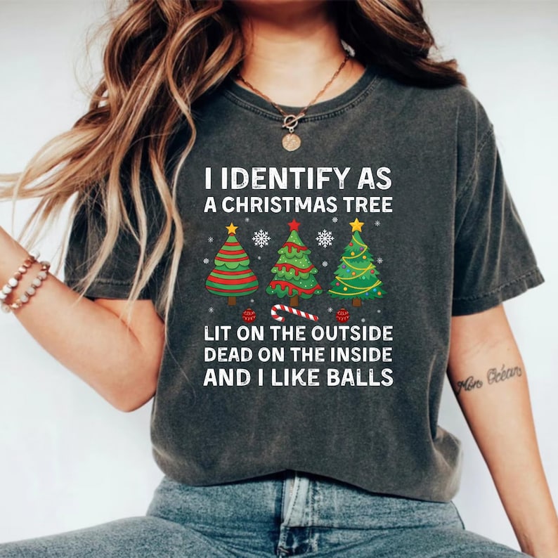 I Identify As A Christmas Tree Shirt, Lit On The Outside Dead On The Inside Shirt, Funny Christmas Trees tee Offensive Adult Christmas Humor