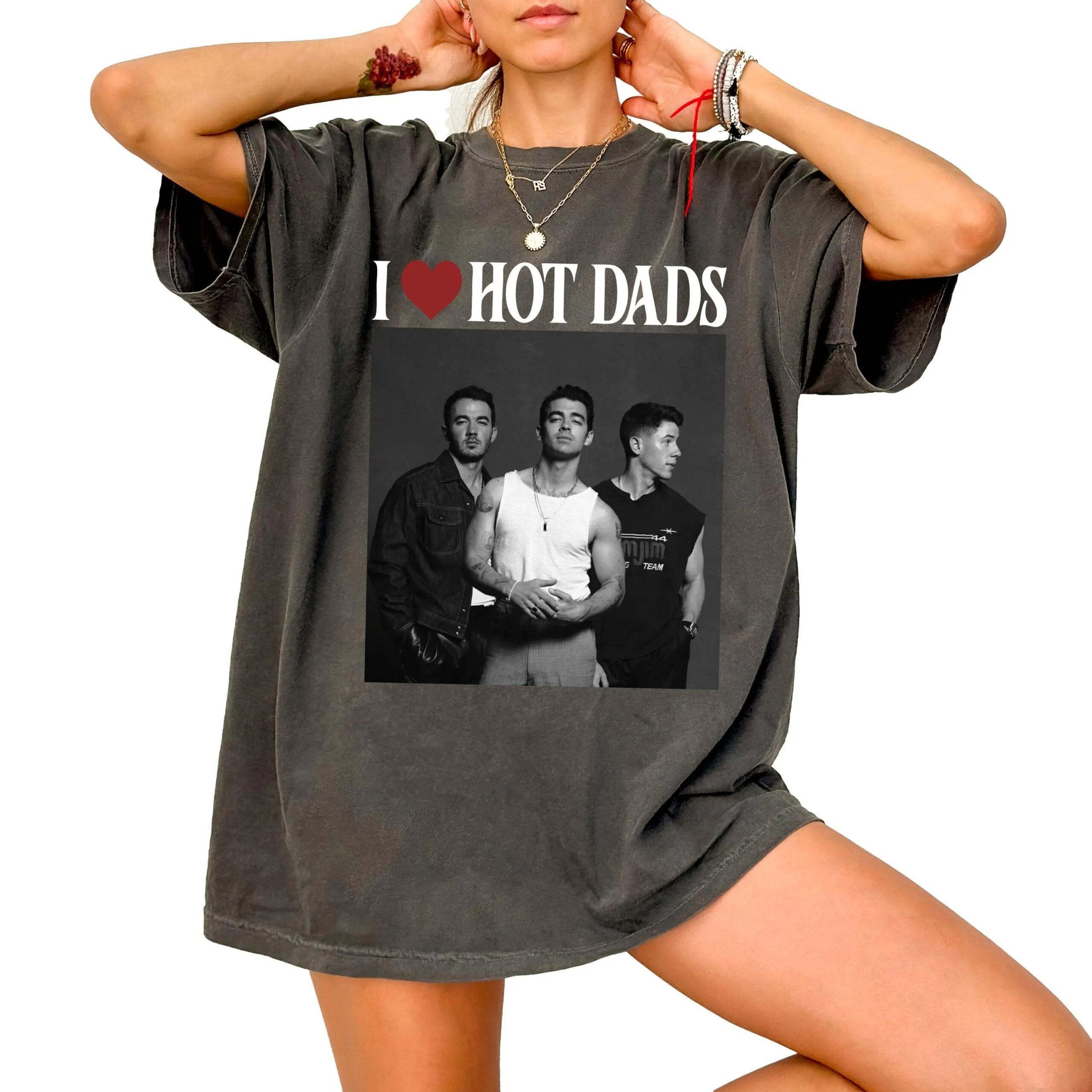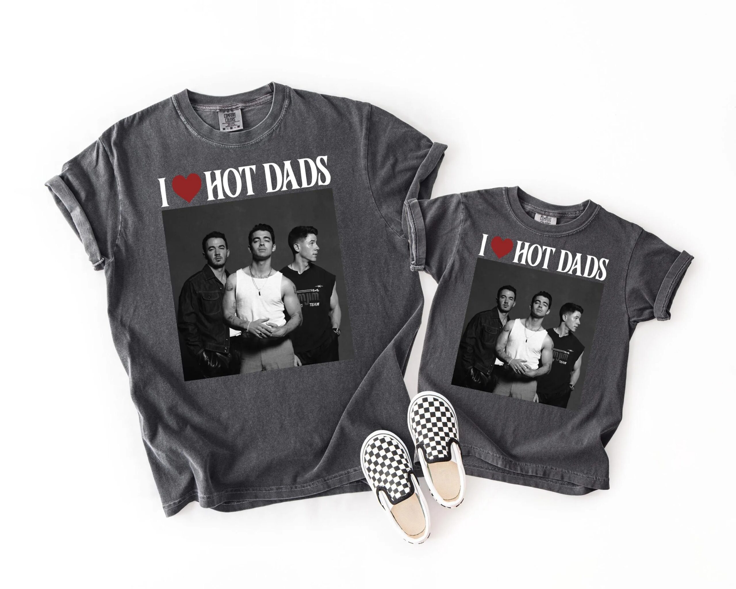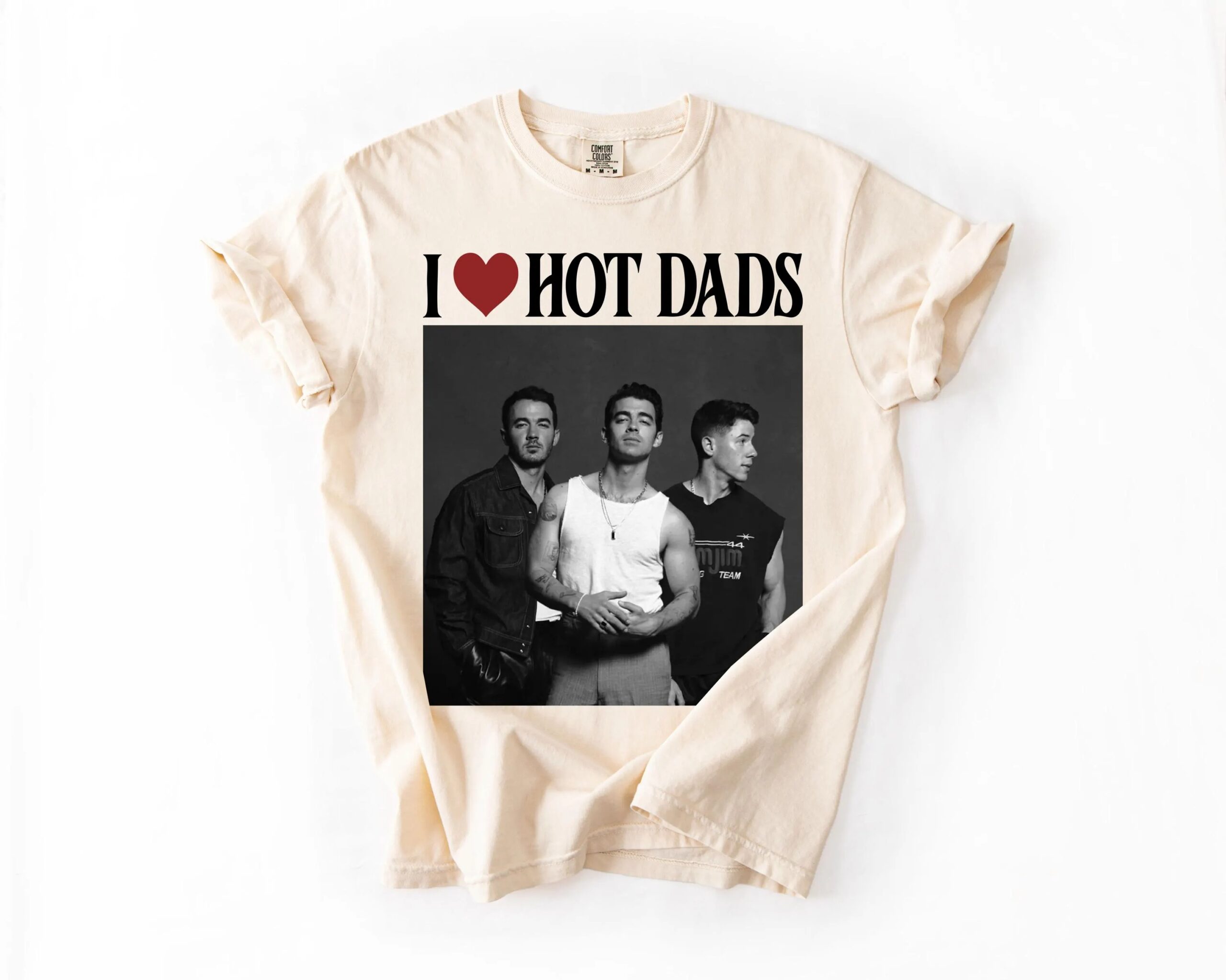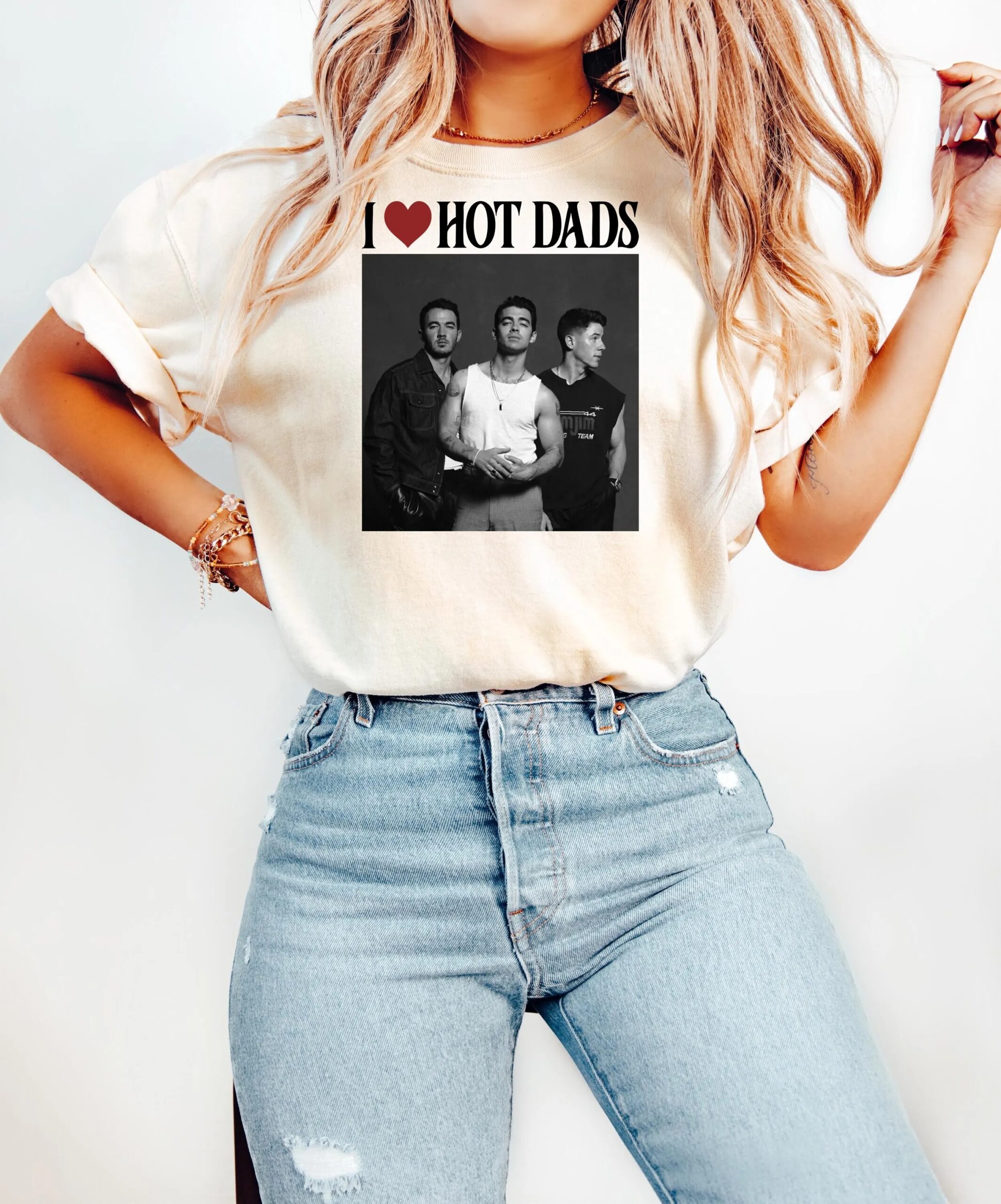 I Love Hot Dads T-shirt – Nick Jonas Shirt – Funny Music Fan Gift – Jonas Brothers Fan T-shirt – Pop Culture Apparel