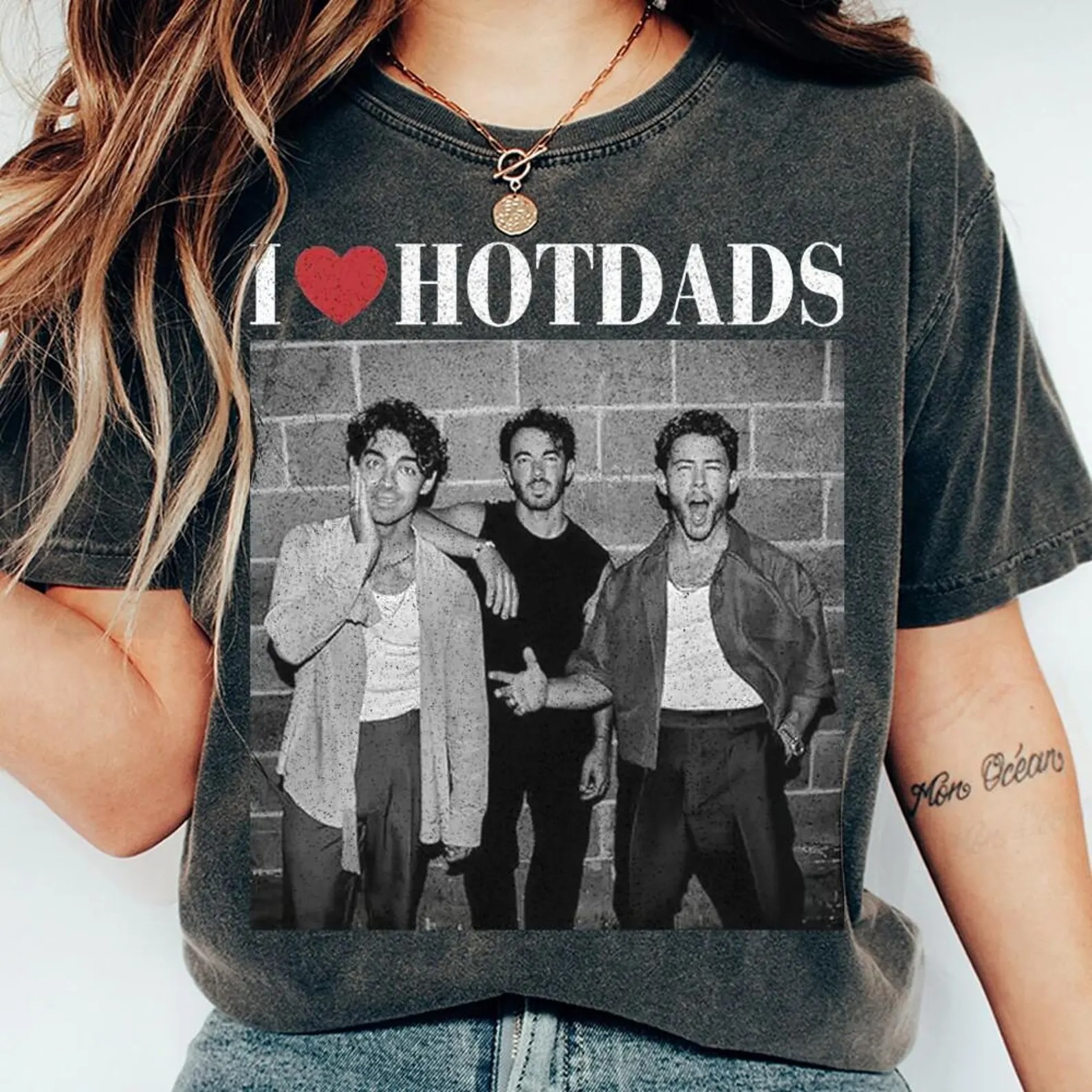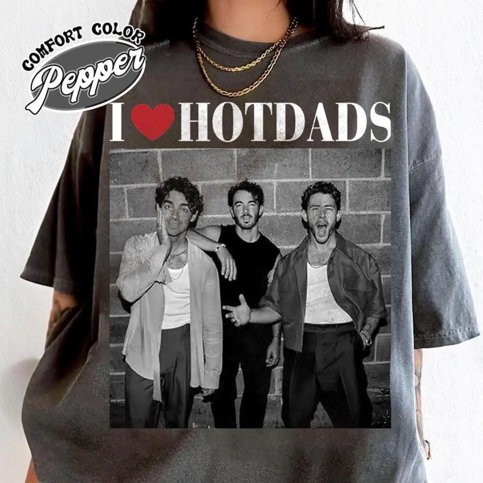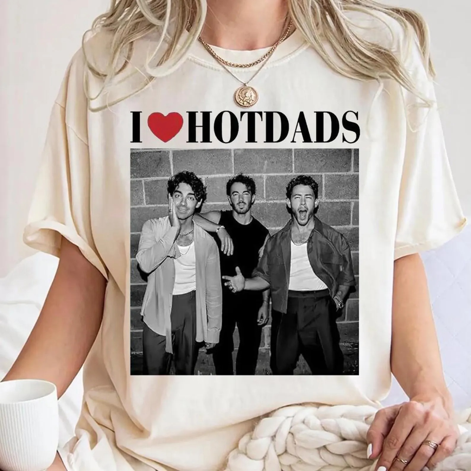 I Love Hot Dads Womens T-Shirt, Jonaass Fandom Merchandise Gift, 3 Brother Living The Dream Tee, Gift For Her Womens Top