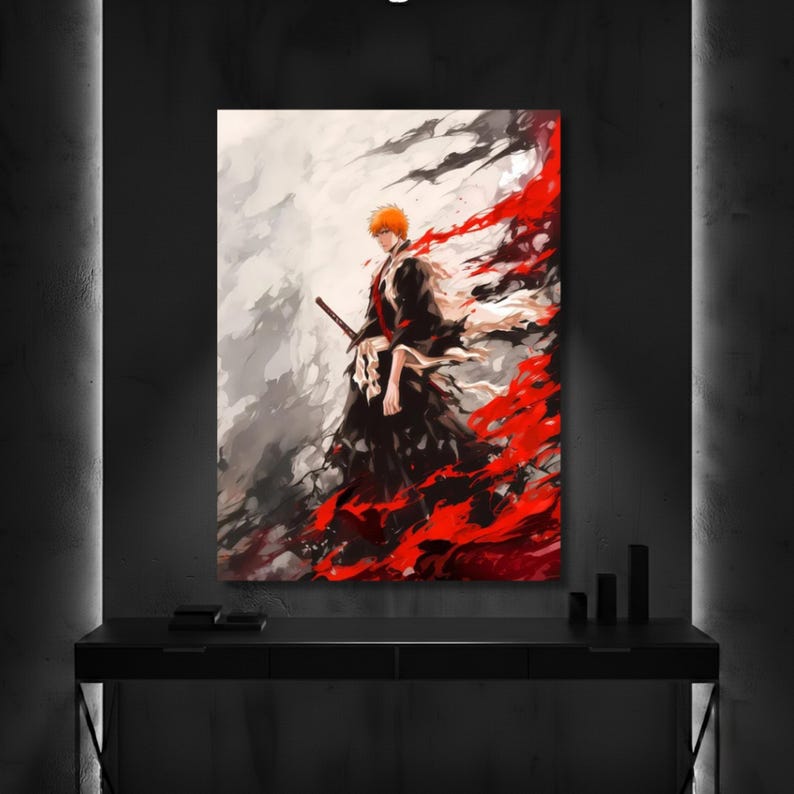 Be the first to review “Ichigo Kurosaki Bleach Metal Poster, Intense Bankai Anime Wall Art, Soul Reaper Decor”