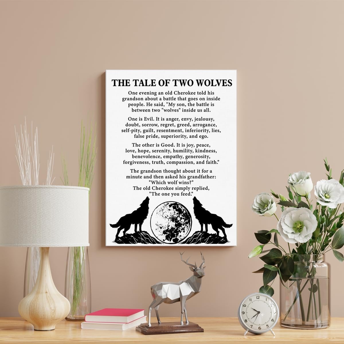 Be the first to review “Inspirational Wall Art Decor Motivational Poster Framed Painting Print the Tale of Two Wolves Quote Canvas Artwork for Home Office Decor”