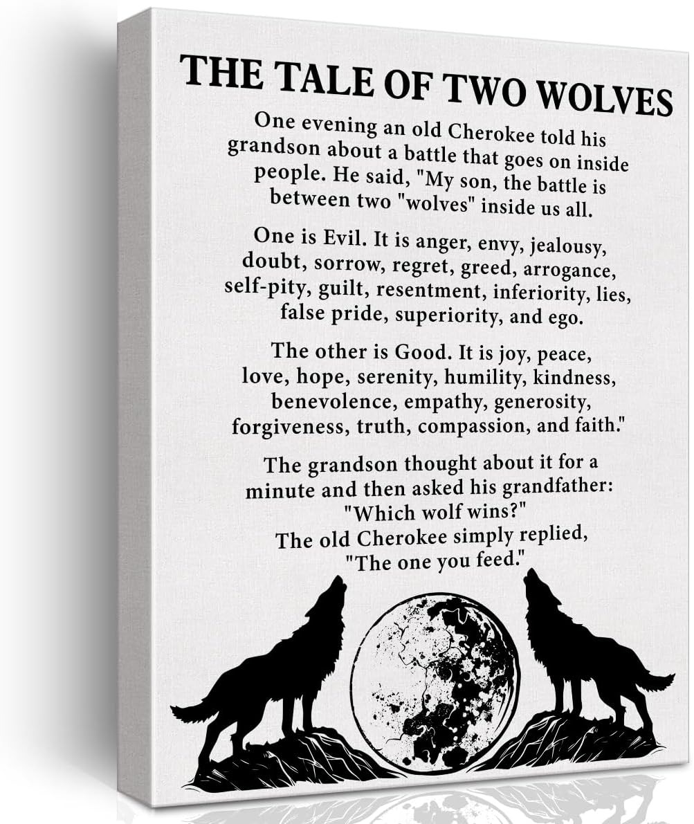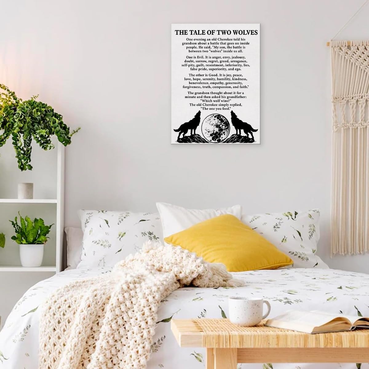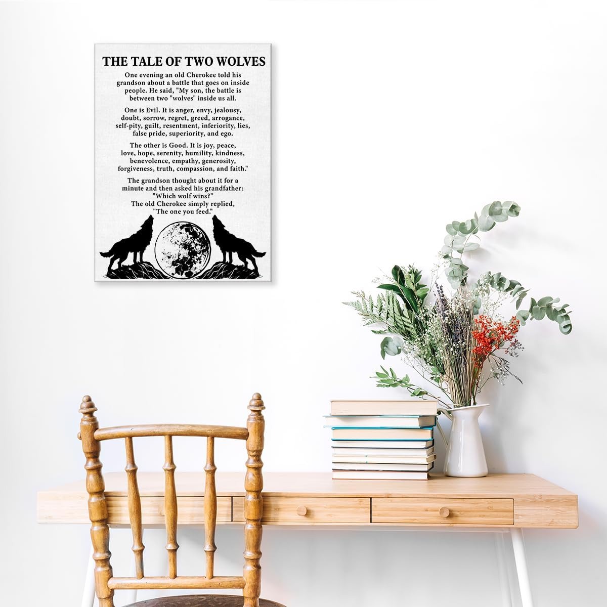 Inspirational Wall Art Decor Motivational Poster Framed Painting Print the Tale of Two Wolves Quote Canvas Artwork for Home Office Decor