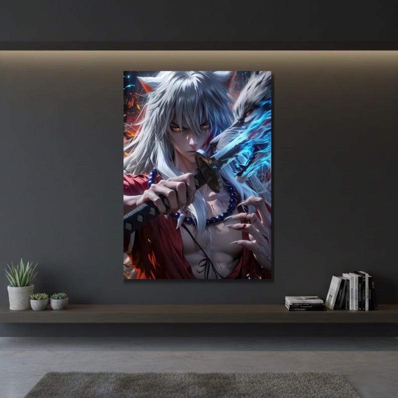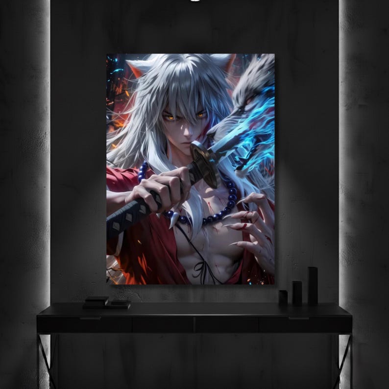 Inuyasha Demonic Warrior Metal Poster, Demon Form Anime Wall Art, Feudal Fairy Tale Decor