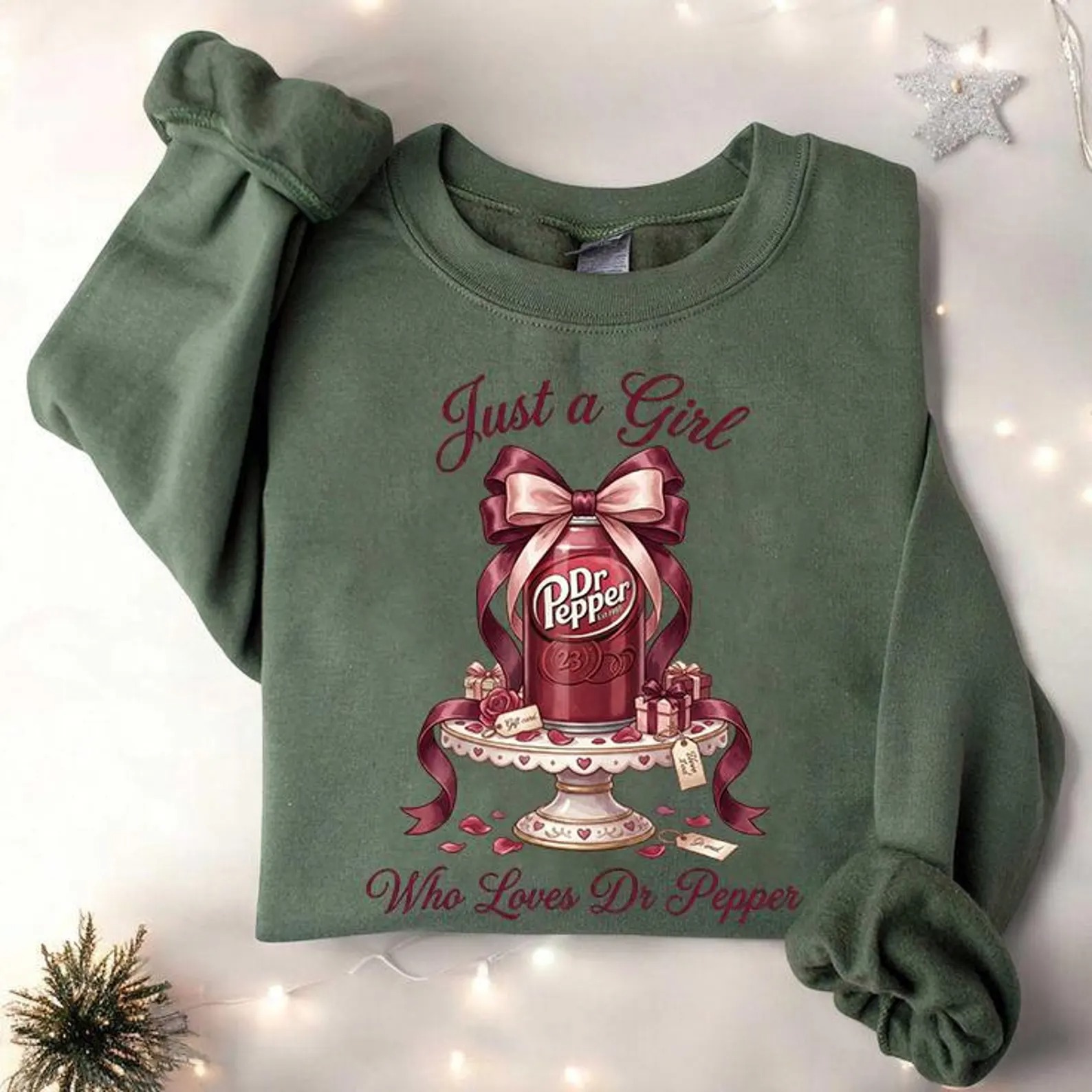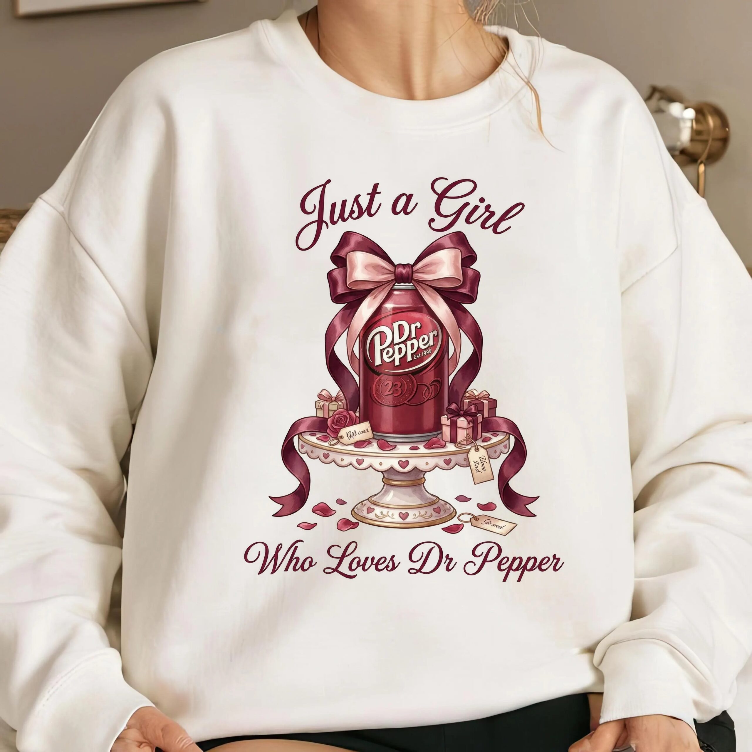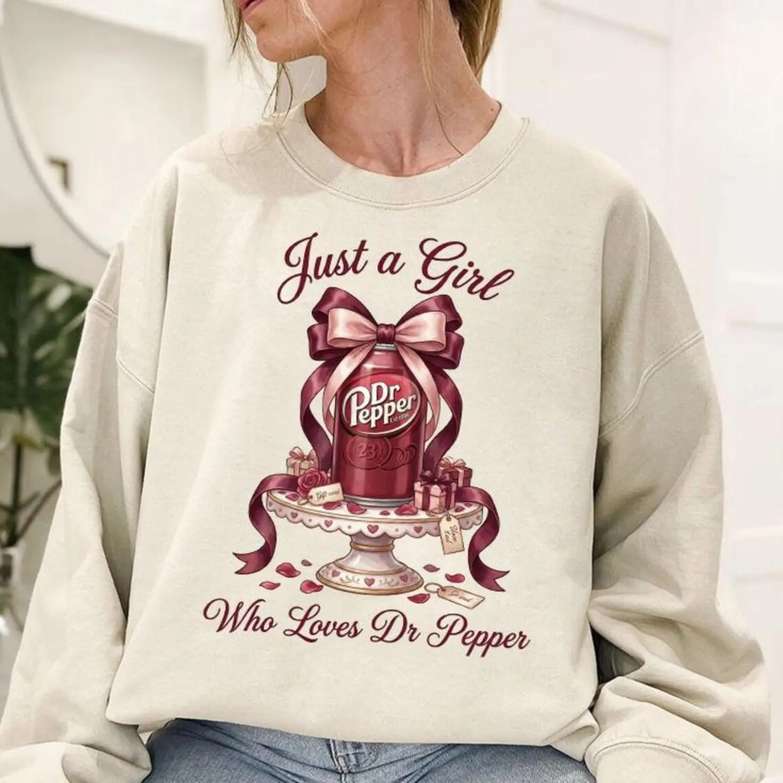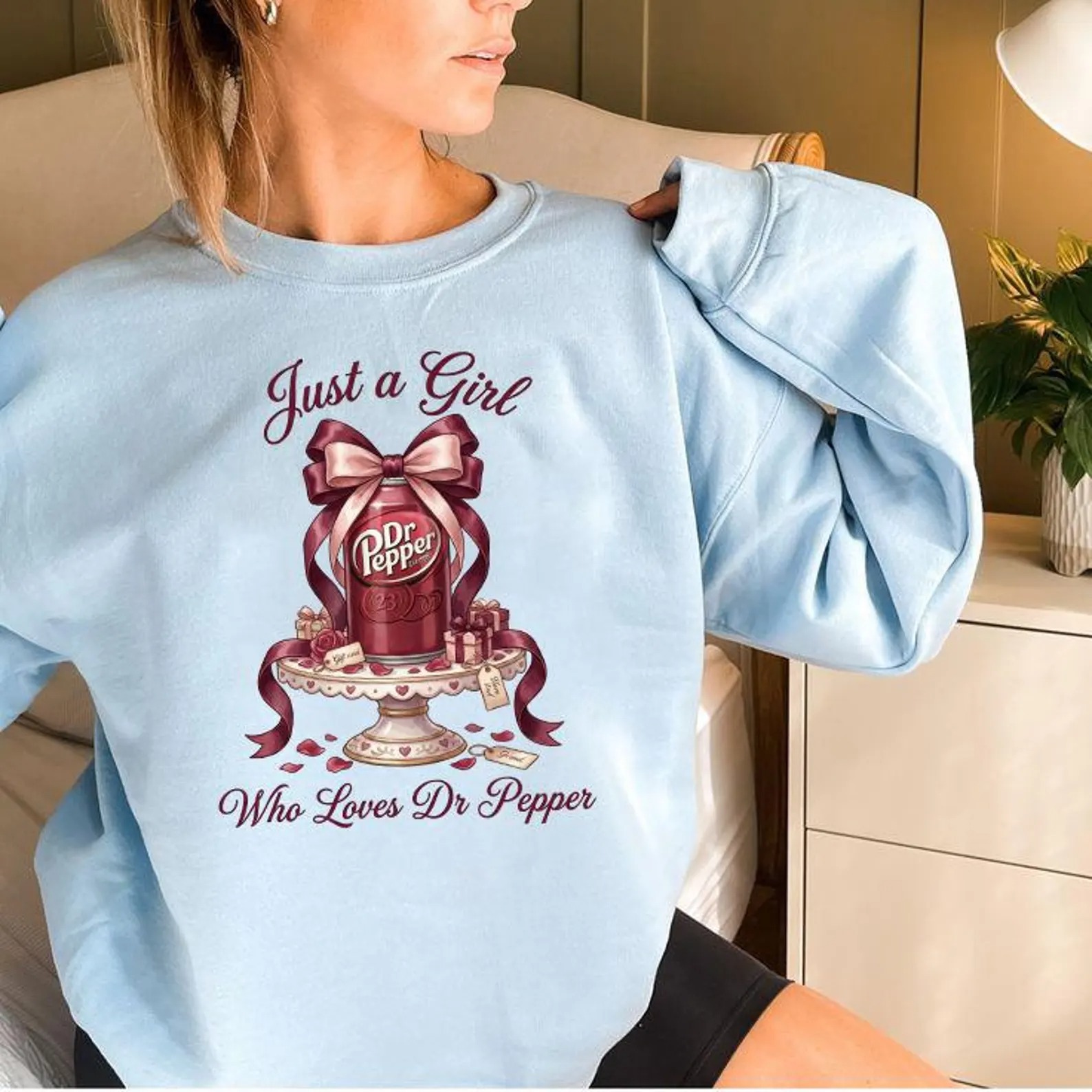 Just a Girl Who Loves Dr Pepper Sweatshirt, Cute Soda Lover Crewneck, Retro Dr Pepper Shirt, Aesthetic Drink Tee, Graphic Top