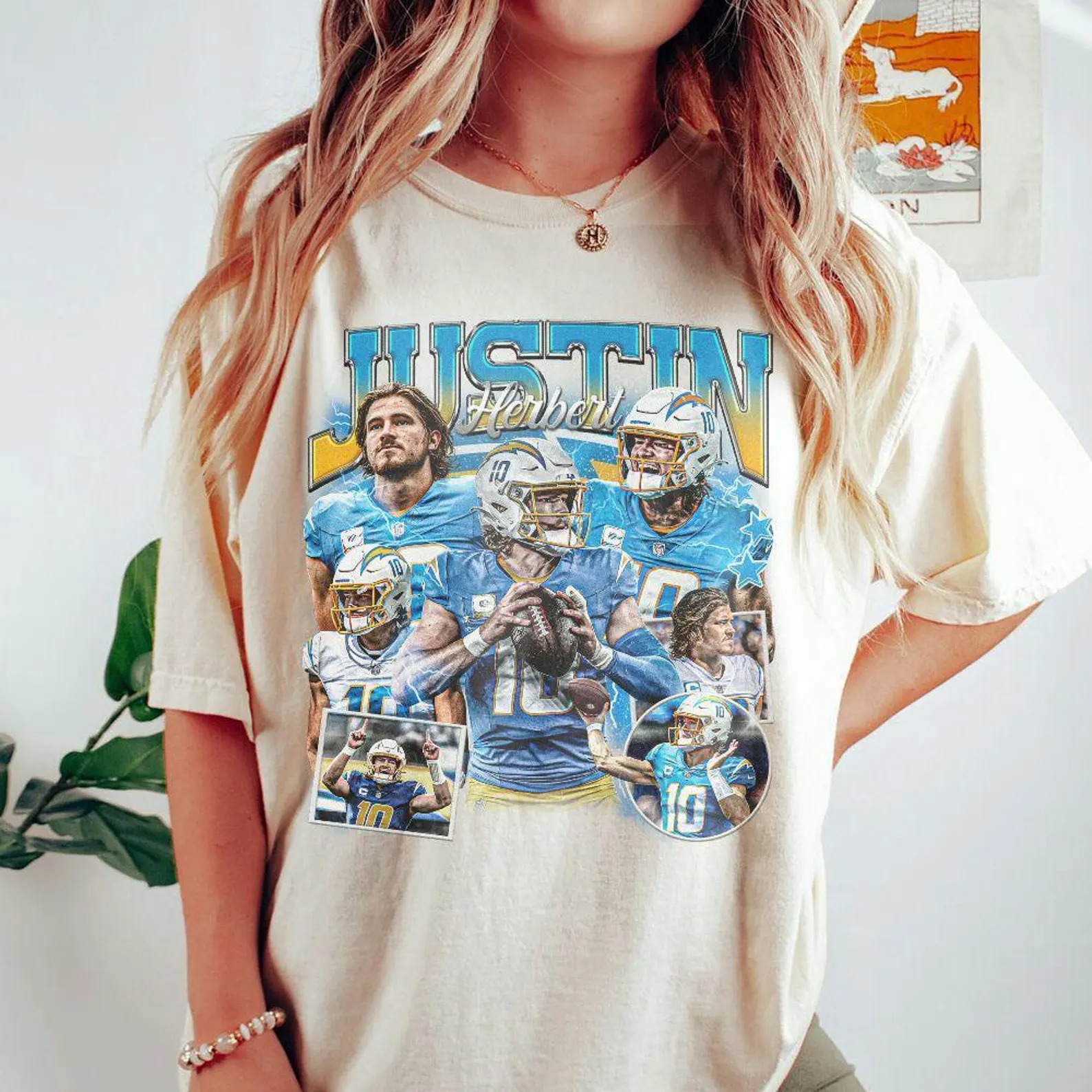 Justin Herbert Shirt, Football American Graphic Vintage, 90s Bootleg Inspired Gift Fan Unisex Shirt, Hoodie, Sweatshirt