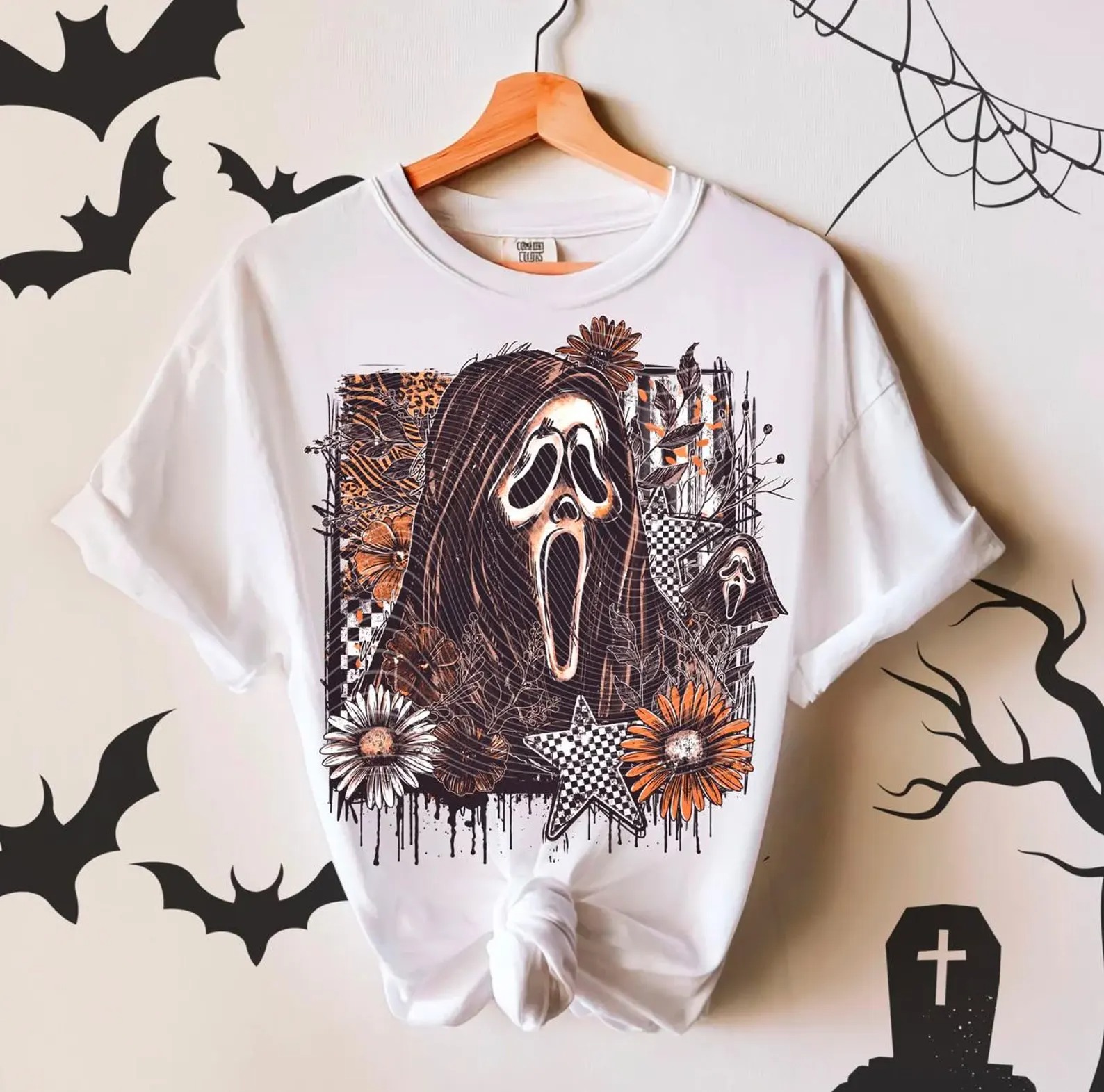 Ghostface Tshirt, Stars, Pumpkin, Fall, Halloween Graphic Tee, Halloween Shirt, October, Spooky, Horror