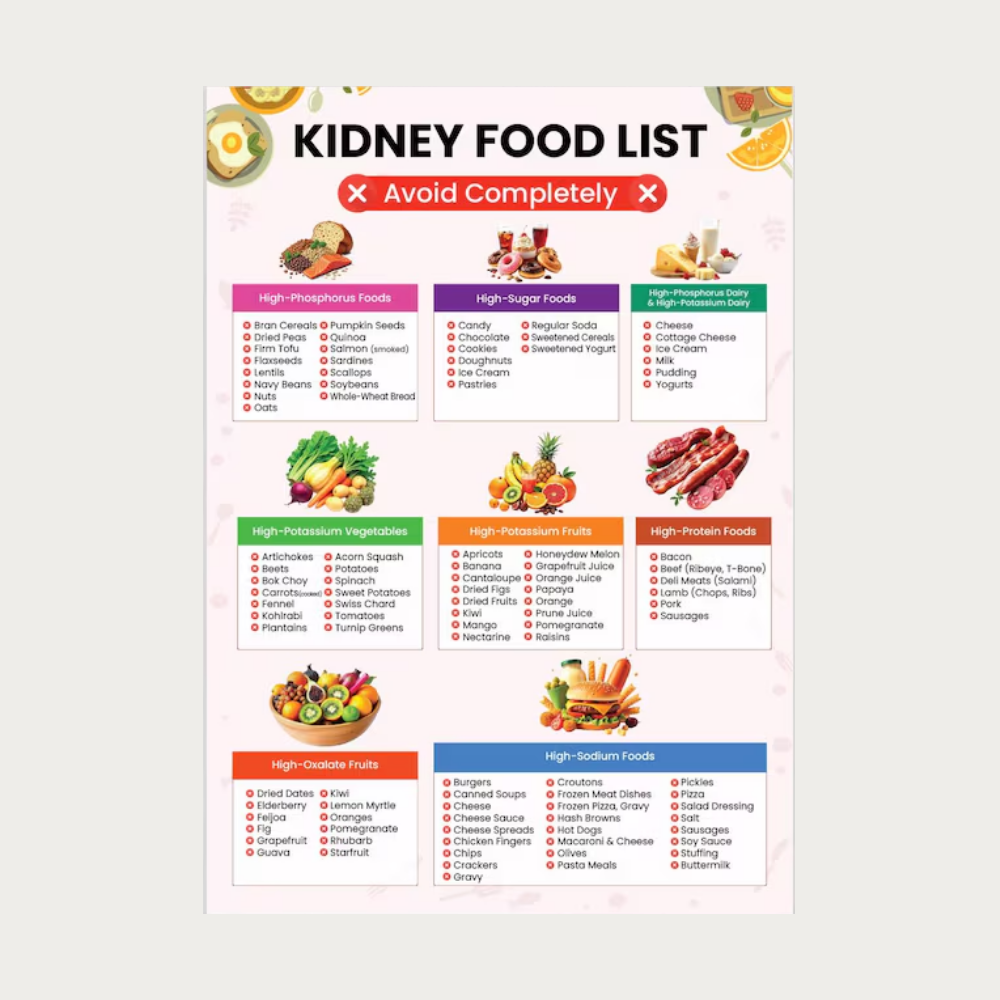 Kidney Diet Food Chart Poster & Canvas, CKD Renal Diet Guide Avoid List
