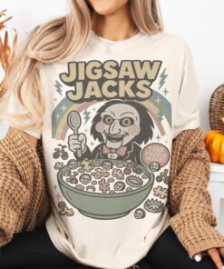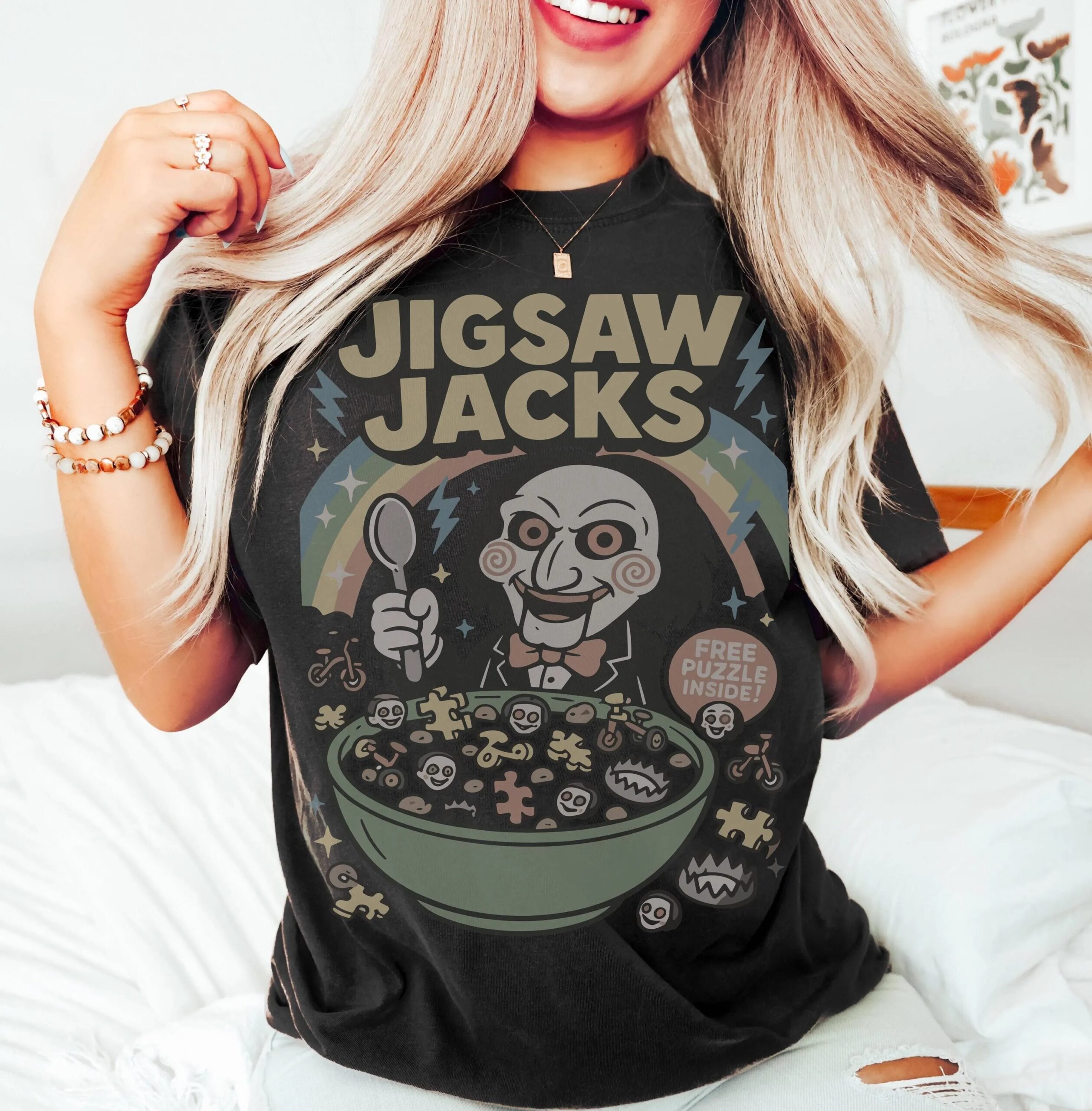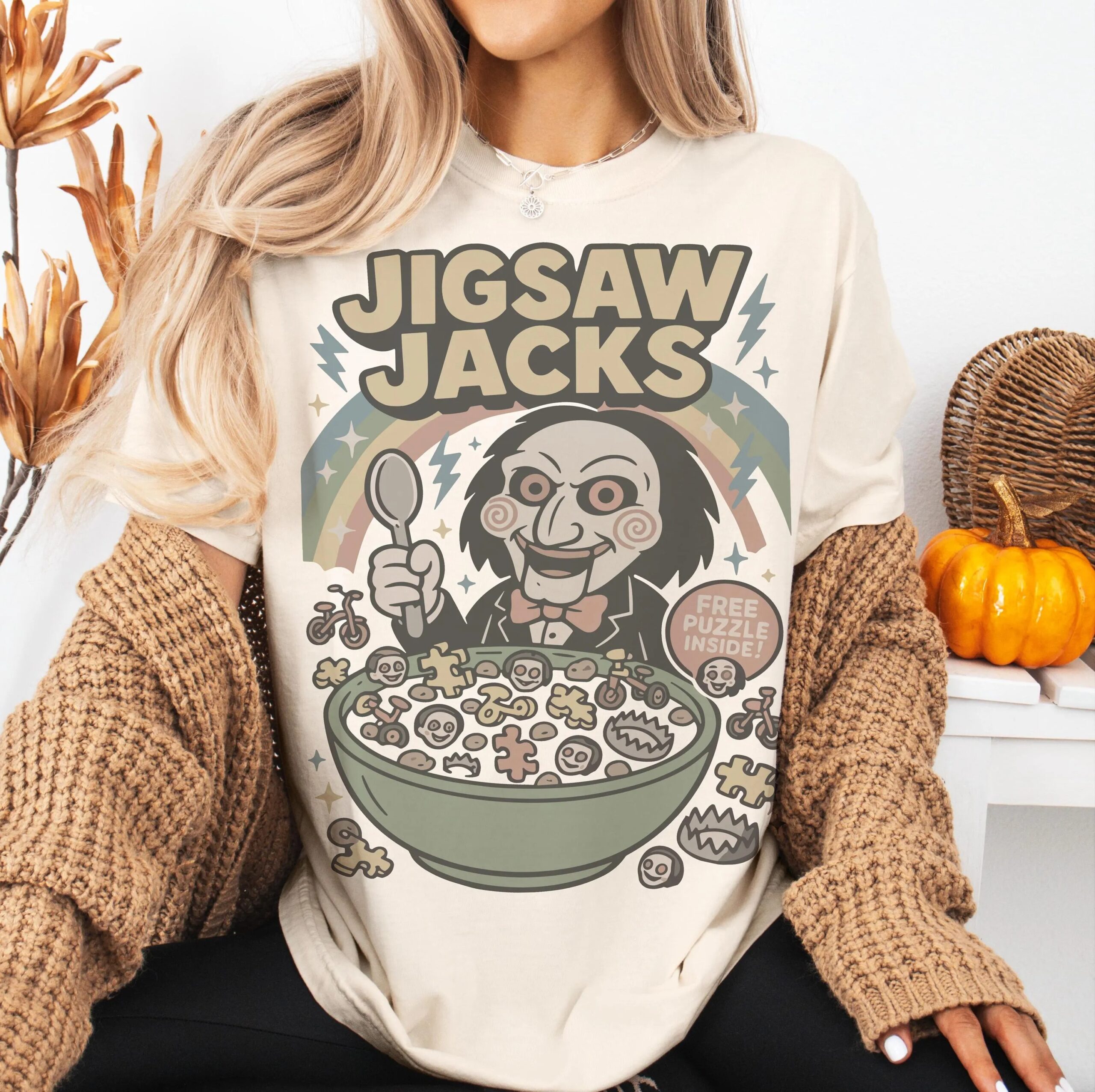 Vintage Jigsaw Jacks Cereal Halloween T-Shirt, Halloween Lover Gift, Saw Movie Halloween Shirt, Saw Movie Merchandise