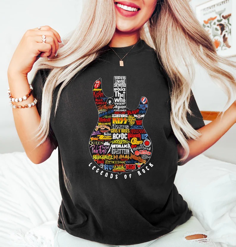 Legends of Rock T-Shirt, Vintage Guitar Shirt, Classic Rock Music Fan Top, Retro Band Concert Tee, Music Lovers Gift Apparel