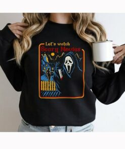 Let’s Watch Scary Movie Sweatshirt T Shirt, Scream Ghostface Sweatshirt, Vintage Halloween 90s Scream Ghostface Sweatshirt