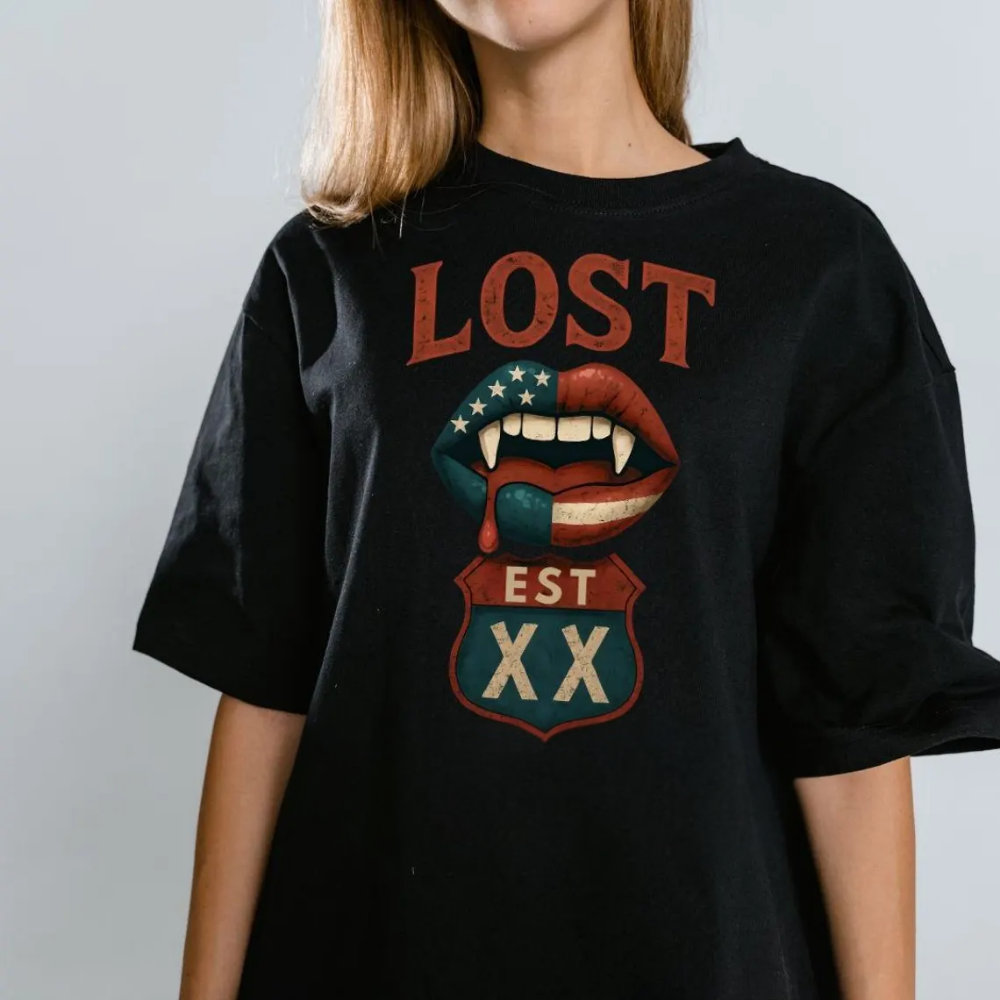 Lost Vampire Fangs Tshirt, MGK Graphic Tee, Distressed Patriotic T-Shirt, MGK Lost EST XX Shirt, MGK Concert Merch, Vintage Americana Top