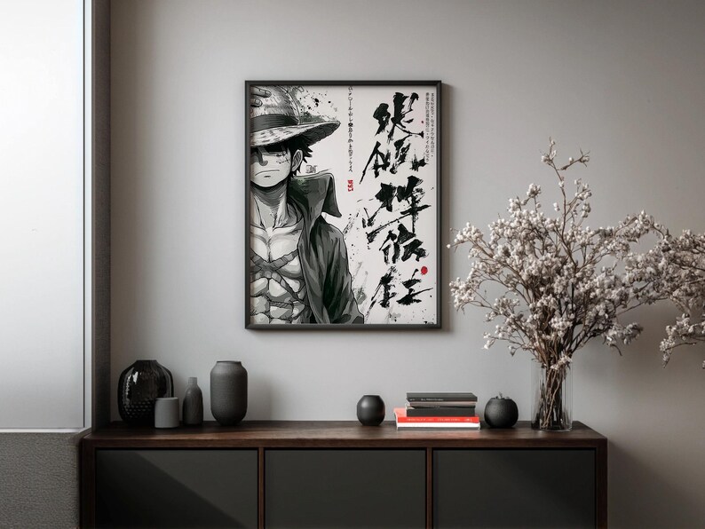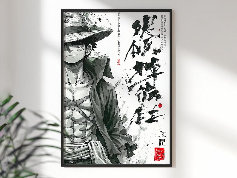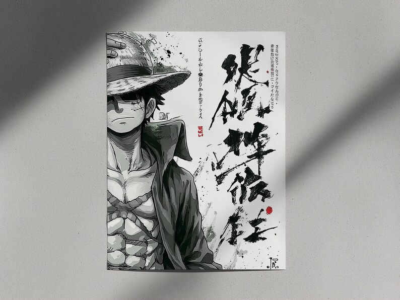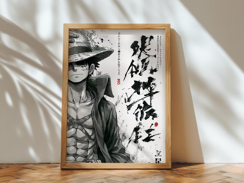 Be the first to review “Luffy Inspired Poster, One Piece Pirate King Ink Print, Minimalist Anime Decor”