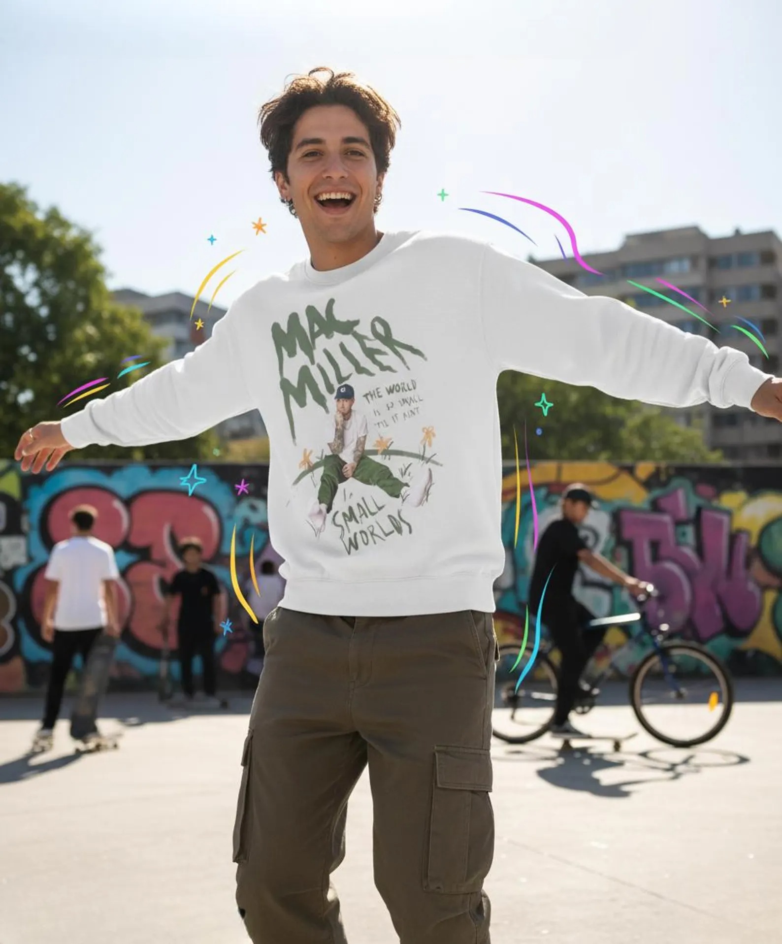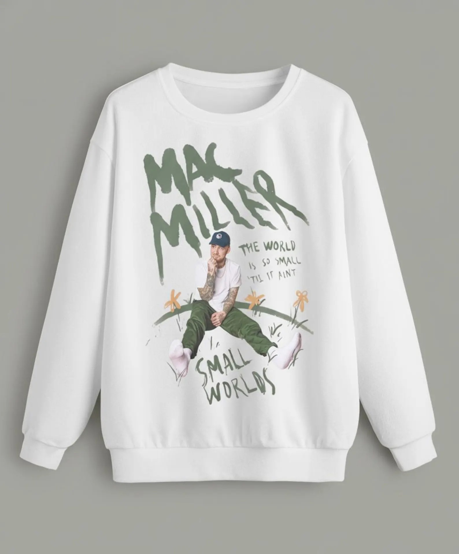 Mac Miller Small Worlds Illustration Crewneck Sweatshirt, Mac Miller Graphic T-Shirt, Hip Hop Rap Music Fan Tee