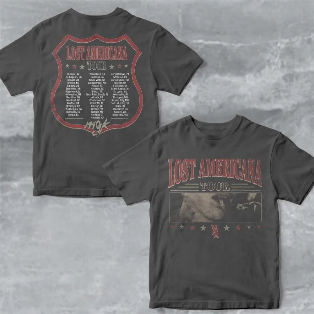 Machine Gun Kelly MGK Lost Americana Tour 2025 2026 Merch Smoking Photo With City List Vintage T Shirt, Sweatshirt & Hoodie
