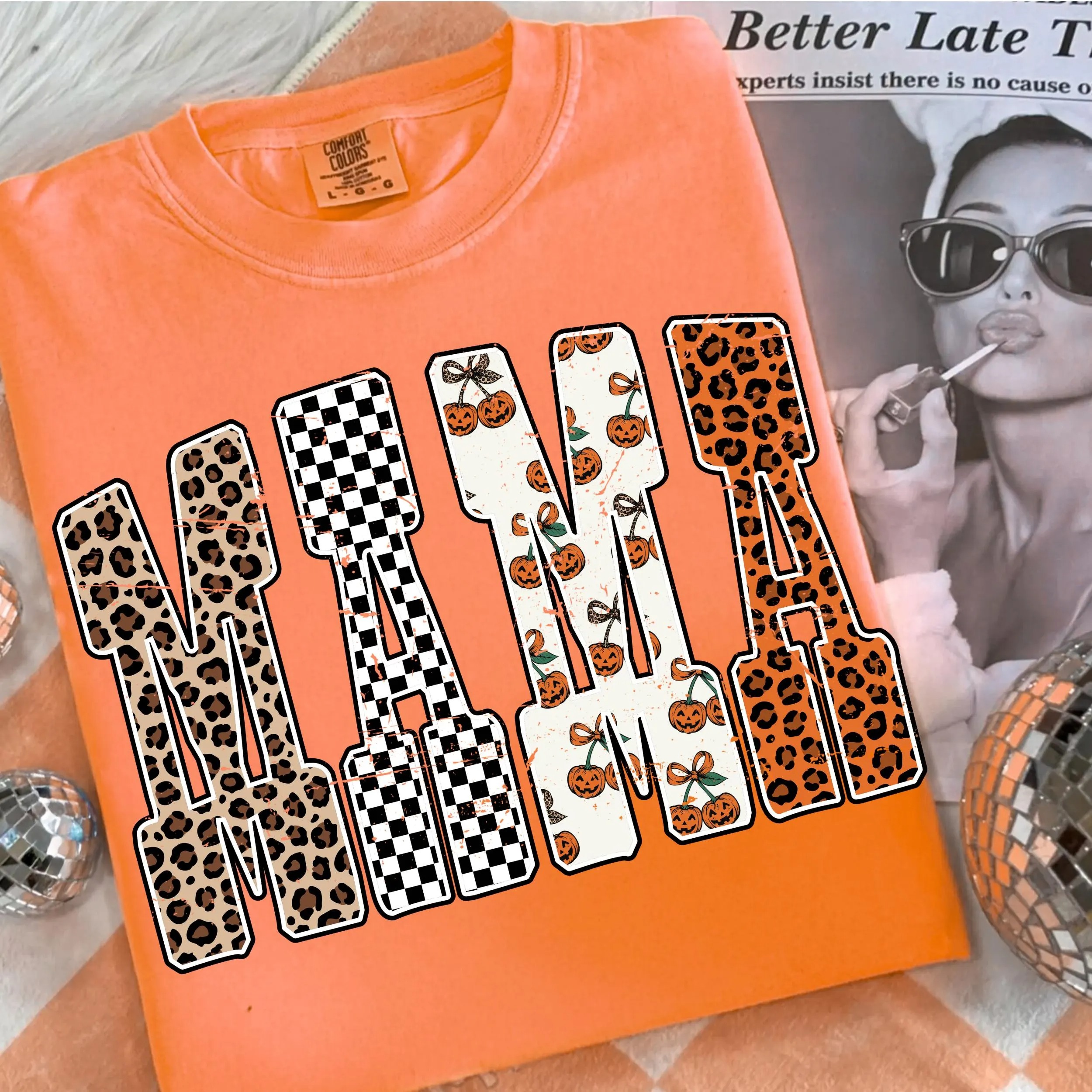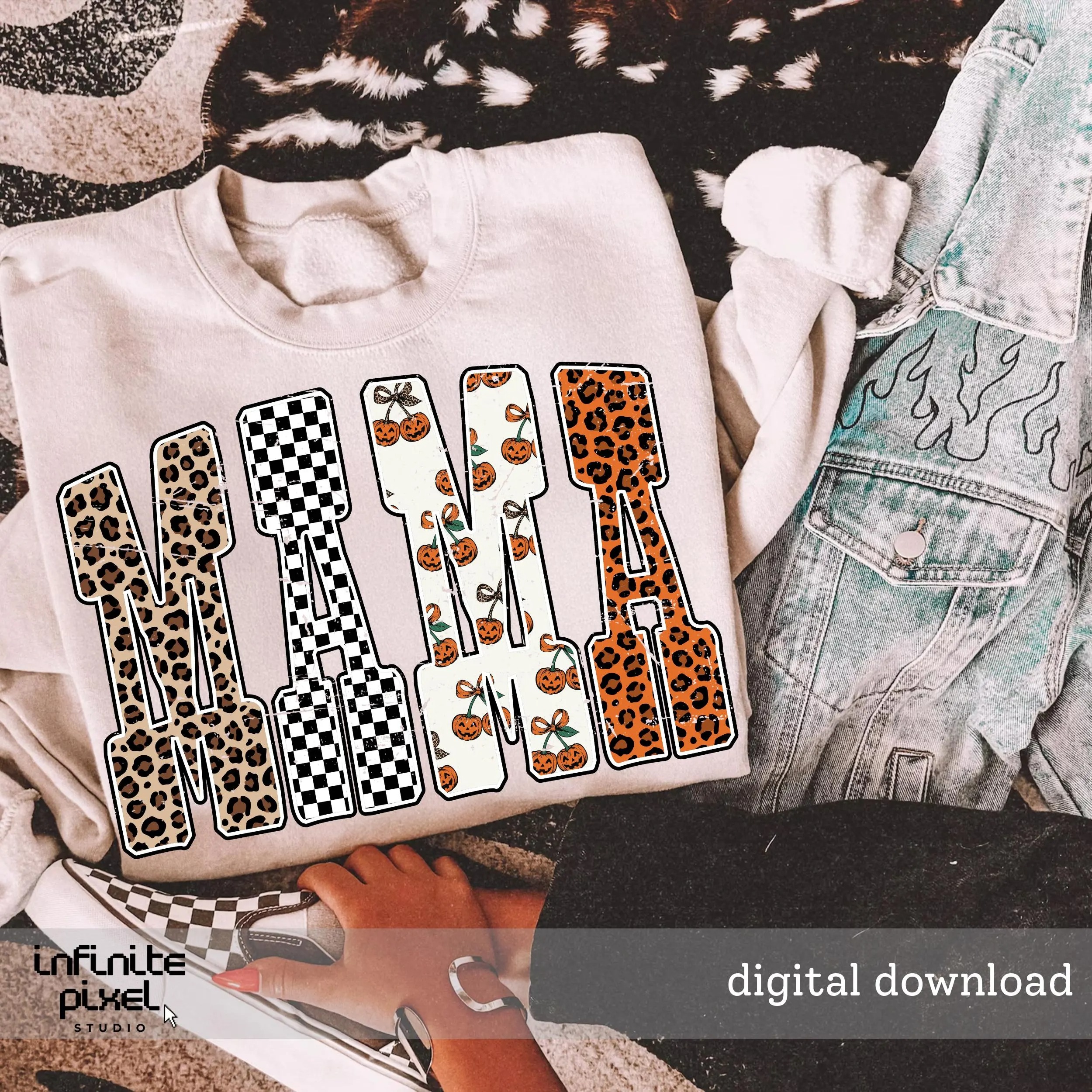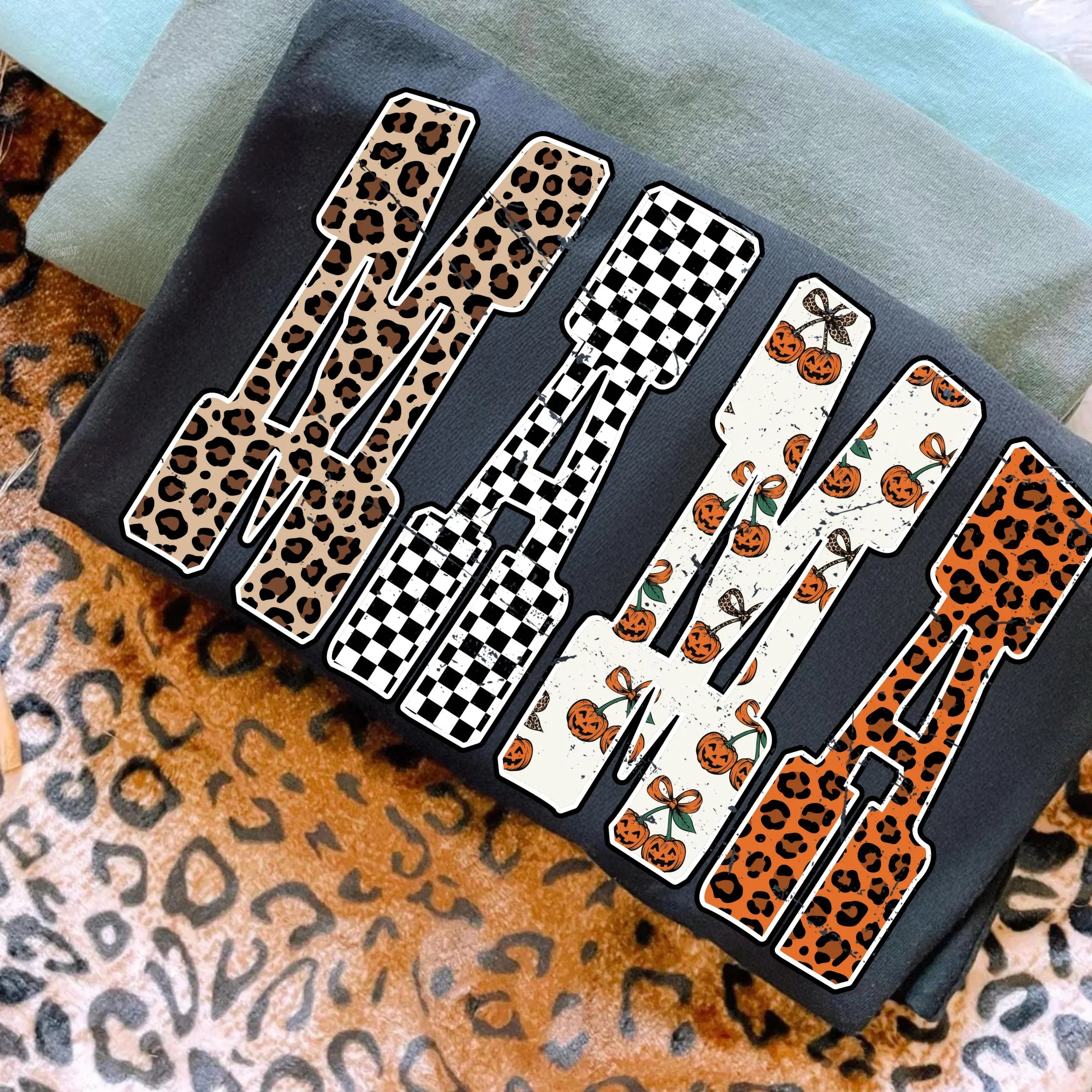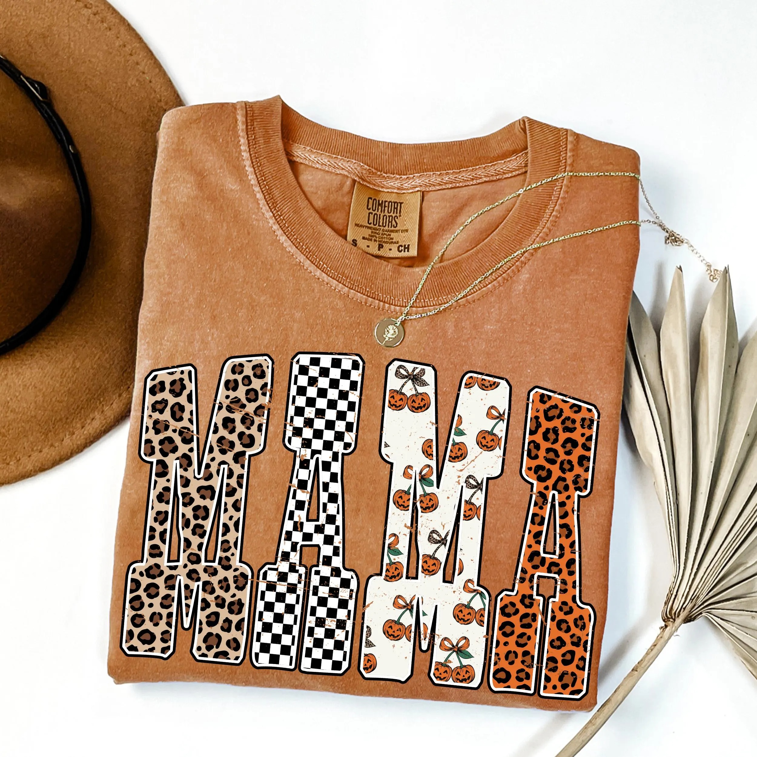 Mama Pumpkin Leopard Shirt, Fall Halloween Shirt, Checkered Mama Shirt