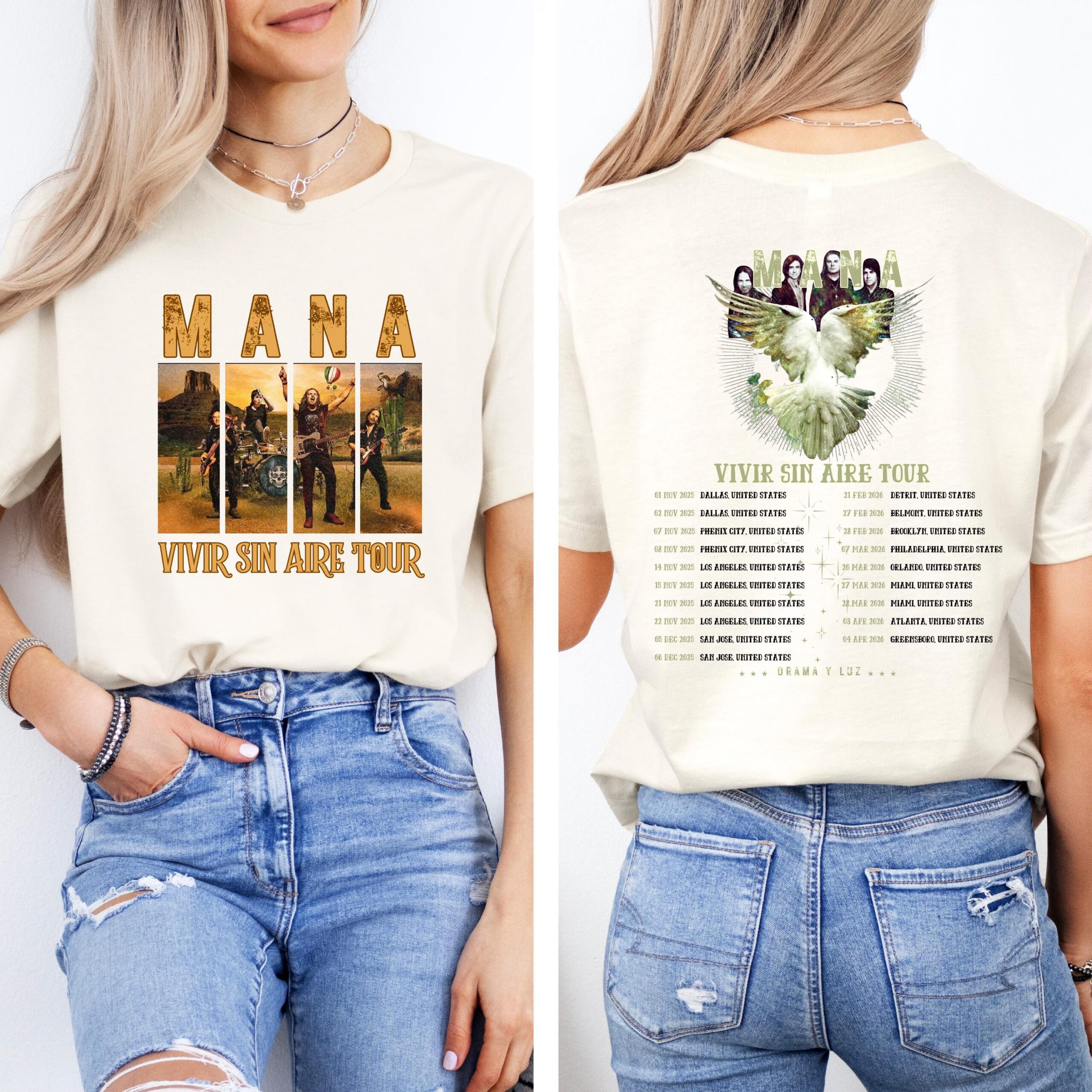 Mana Band Tour 2025 T-Shirt, Maná Vivir Sin Aire Tour 2025 Shirt, Latin Rock Mana Tee, Maná Fan Gift, Mana Merch, Concert Mana Top