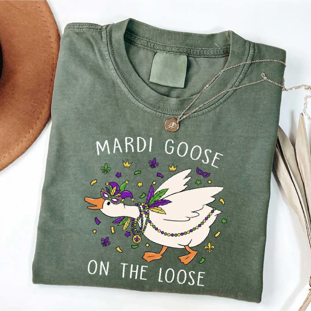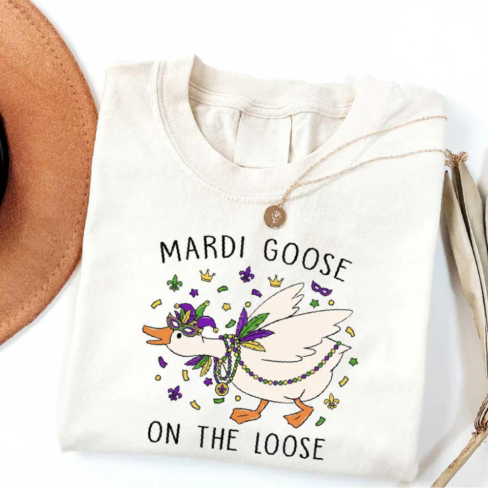 Mardi Goose On The Loose Shirt, Funny Mardi Goose Tee, Carnival Graphic Top, Mardi Gras Festival Tees, Carnival Goose T-Shirt
