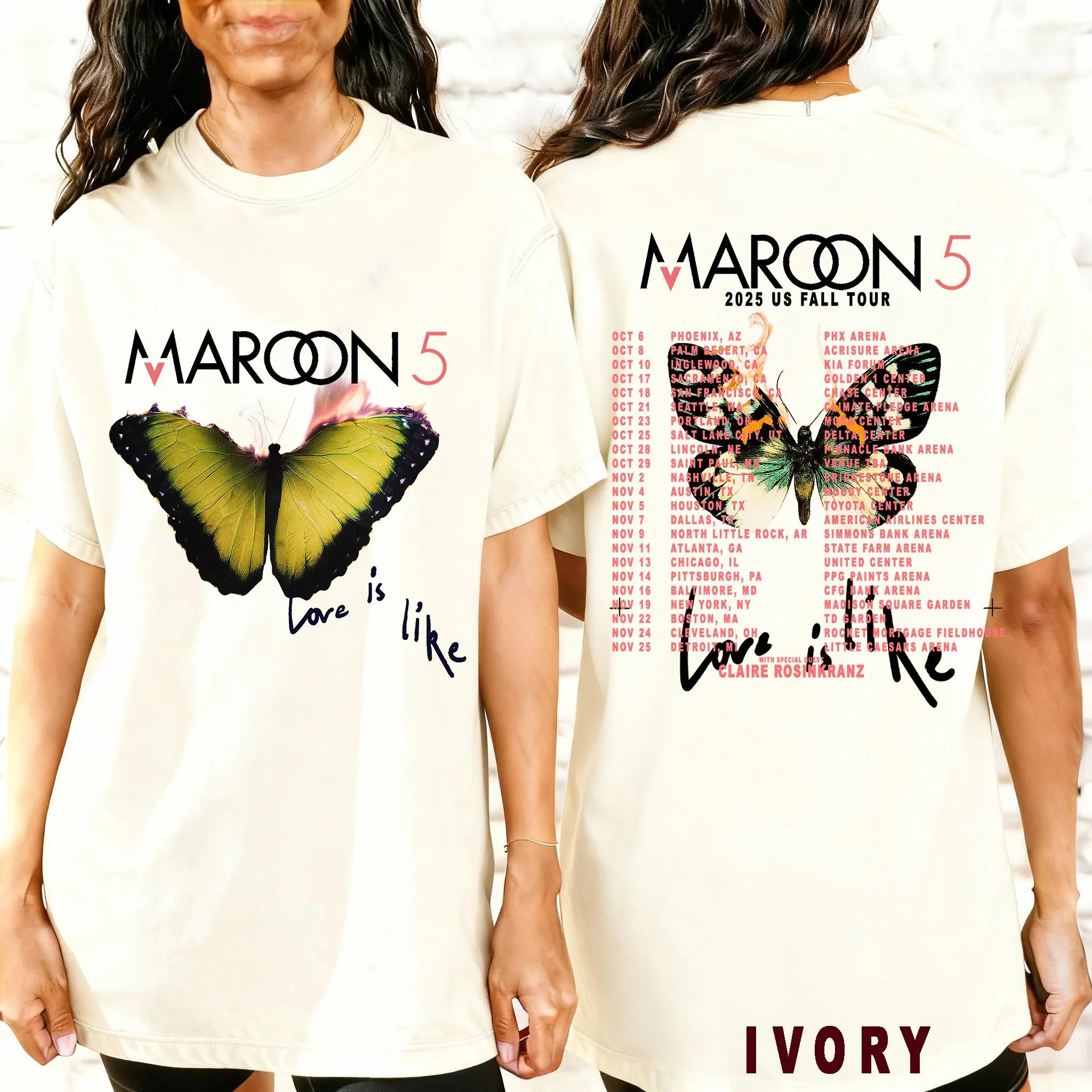 Maroon 5 2025 US Fall Tour Shirt, Butterfly Graphic Tee, Ivory Concert Merch T-Shirt