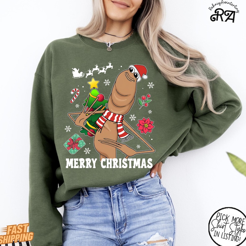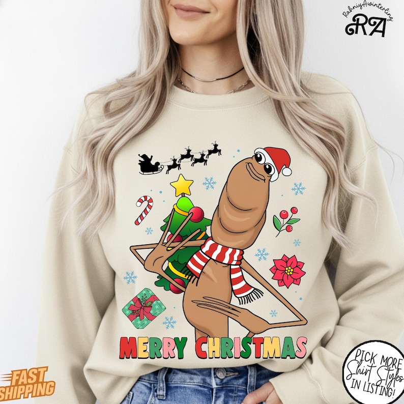 Merry Christmas Marcus The Worm Shirt, Funny Meme Holiday Sweatshirt, Absurd Humor Christmas Crewneck, Viral Trend Gift for Him Her