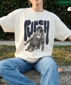 Monkey Punch T-Shirt, Baby Monkey Holding Plush Toy, Baby Monkey Punch Shirt, Trendy Shirt, Trend Viral Baby Monkey Tshirt