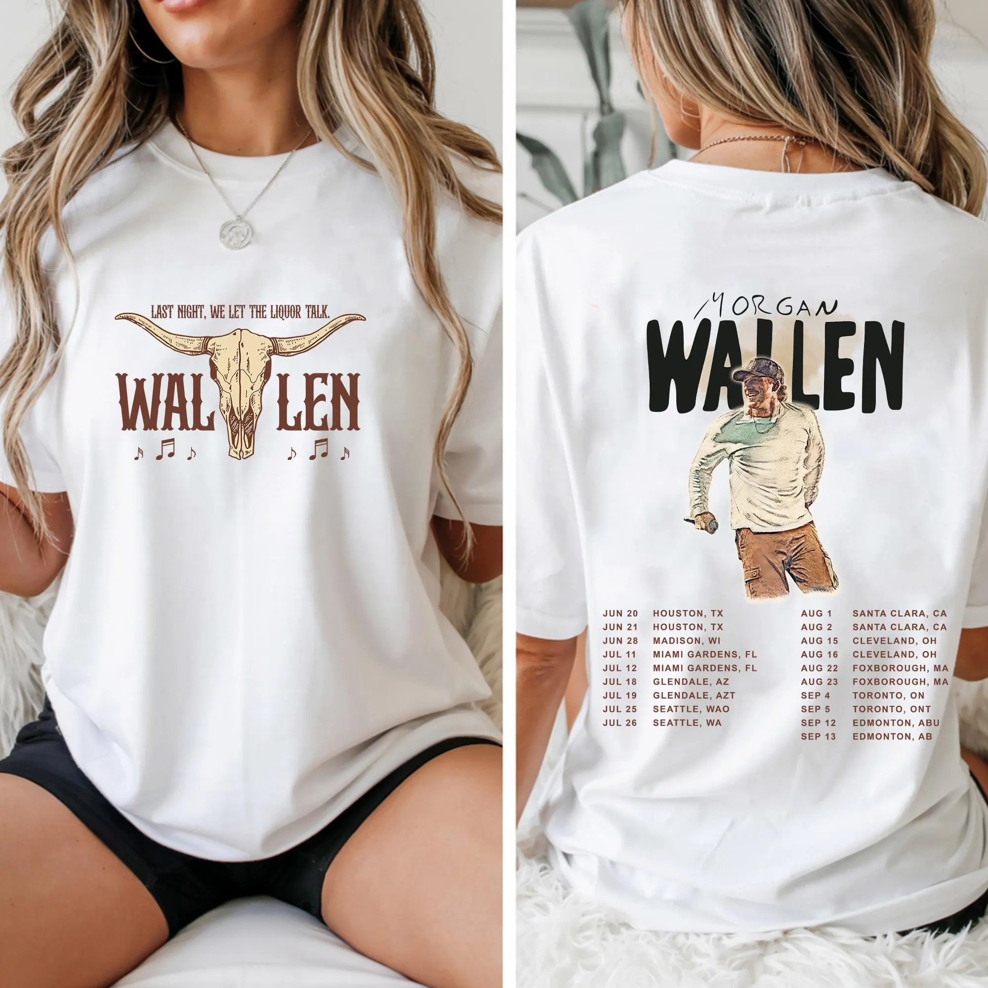 Morgan Wallen Western Double-Sided T-Shirt – Skull & “Last Night” Lyrics, Morgan Shirt, Retro Music Tour Shirt