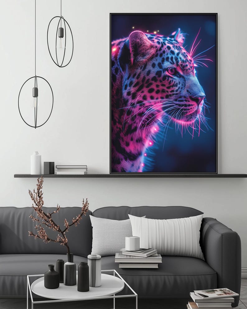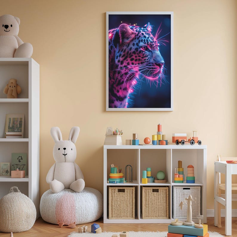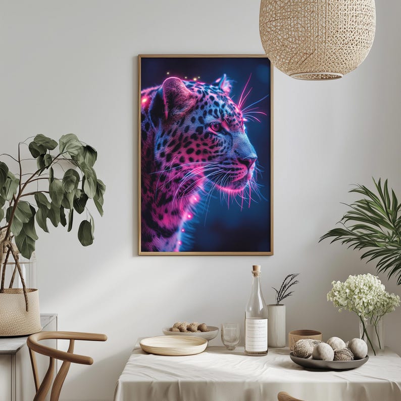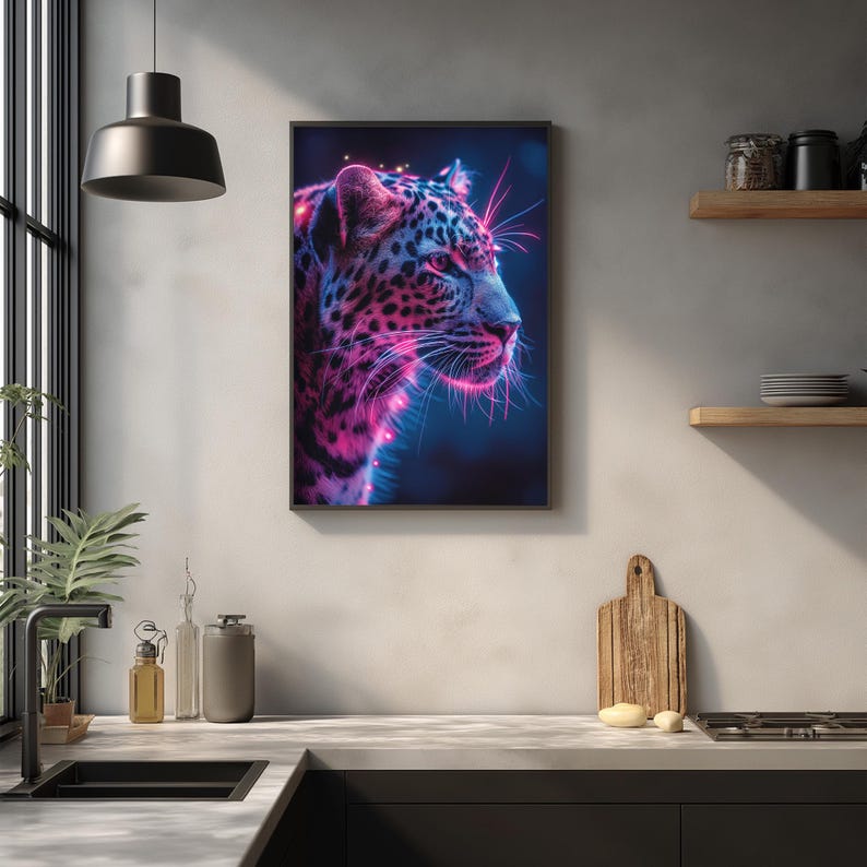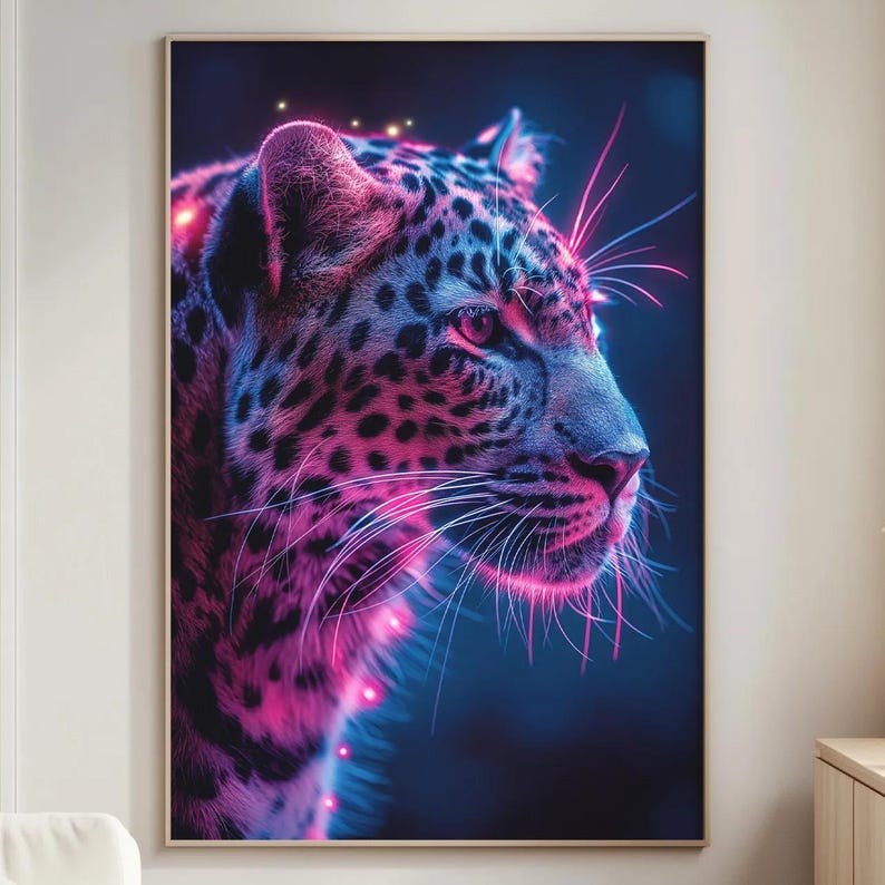 Be the first to review “Neon Leopard Stained Glass Wall Art Print, Bold Animal Poster, Pink Blue Purple Glow Decor, Modern Statement Art for Living Room”