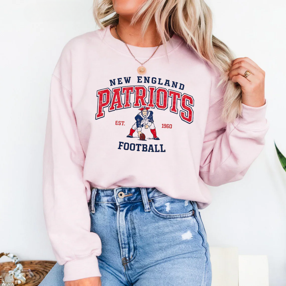 New England Football Vintage Mascot Sweatshirt, Retro Patriots Crewneck T-Shirt & Hoodie