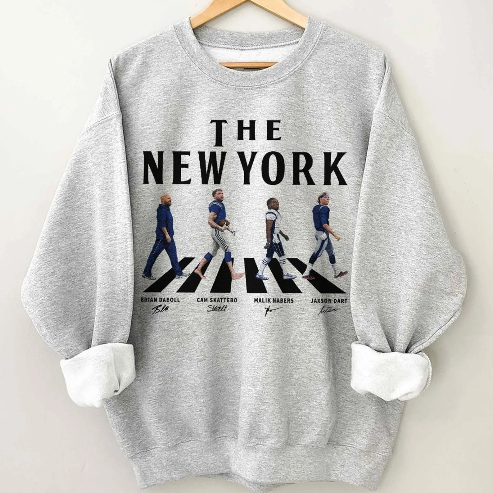 New York Walking Road Signatures Football T-Shirt, Jaxson Dart Malik Nabers, Gift For Fan Football Unisex