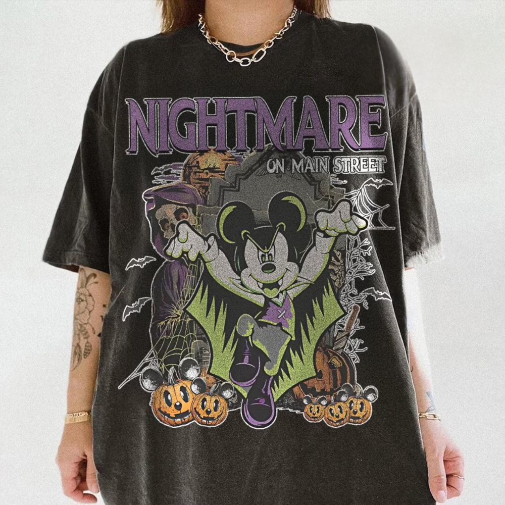 Nightmare on Main Street T-Shirt, Vintage Mickey Halloween Tee, Funny Spider Skeleton Retro Disney Shirt for Halloween 2025 Party
