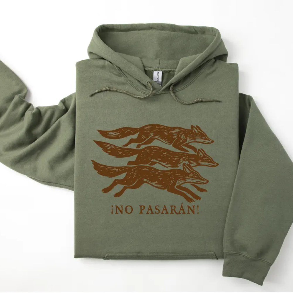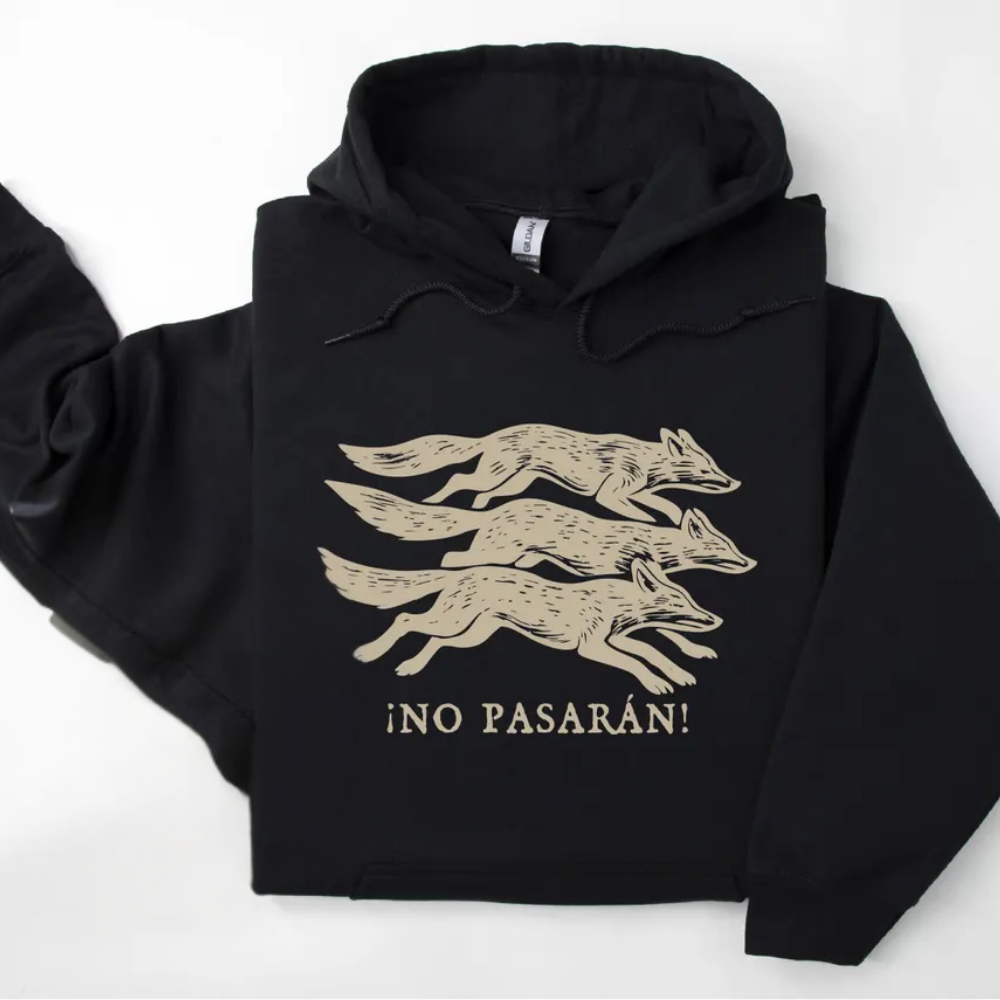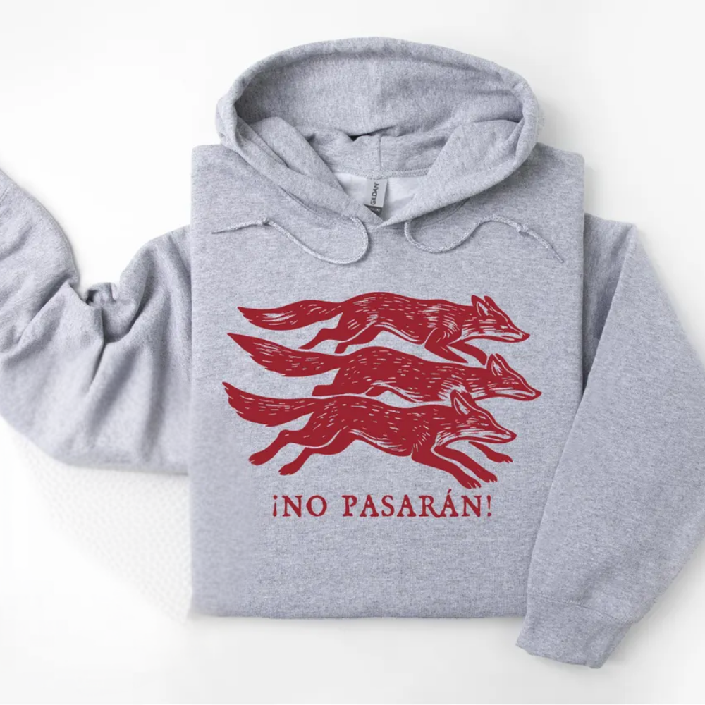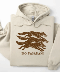 No Pasarán Fox Hoodie, Progressive Leftist Sweatshirt with Three Foxes, Anti-Fascist T-Shirt, Unisex Anti Fascist Sweater