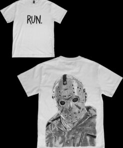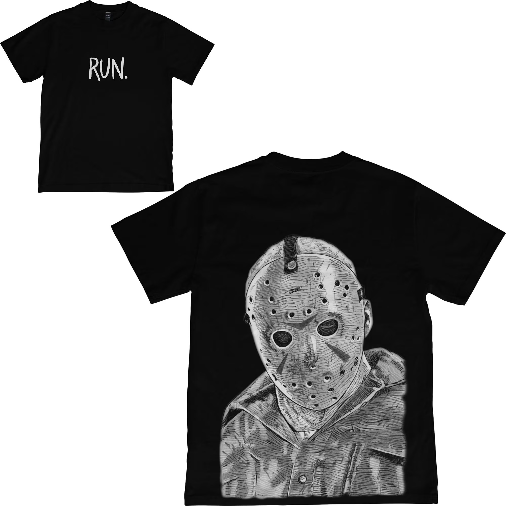 Jason V Horror Shirt | RUN Front Text Tee | Halloween Slasher T-Shirt | Oversized Back Graphic | Scary Movie Fan Top | Horror Nights