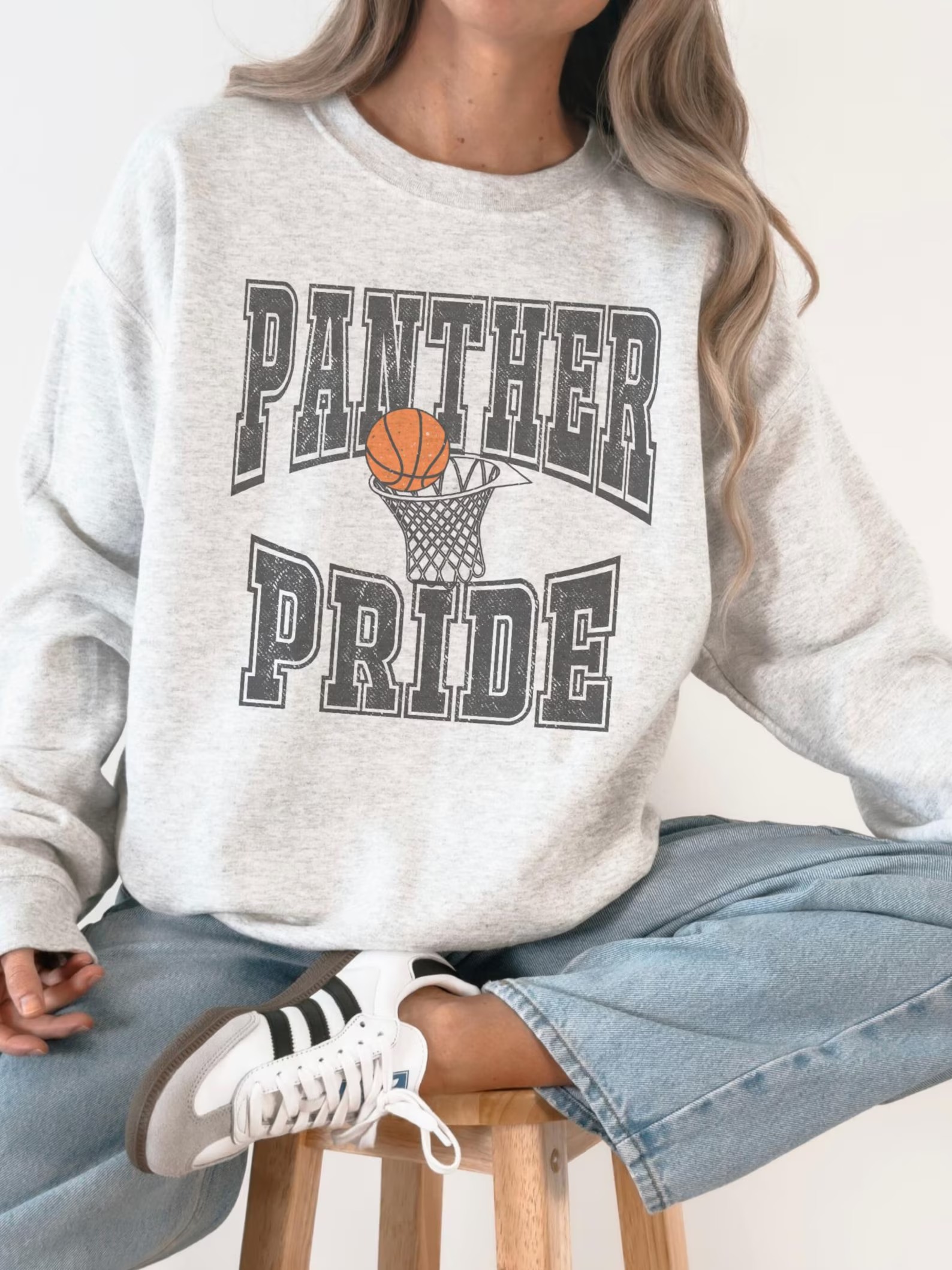 Panther Pride Basketball Sweatshirt | School Spirit Crewneck | Distressed Varsity Basketball Hoodie | Unisex Falcon Team Fan Crewneck Shirt