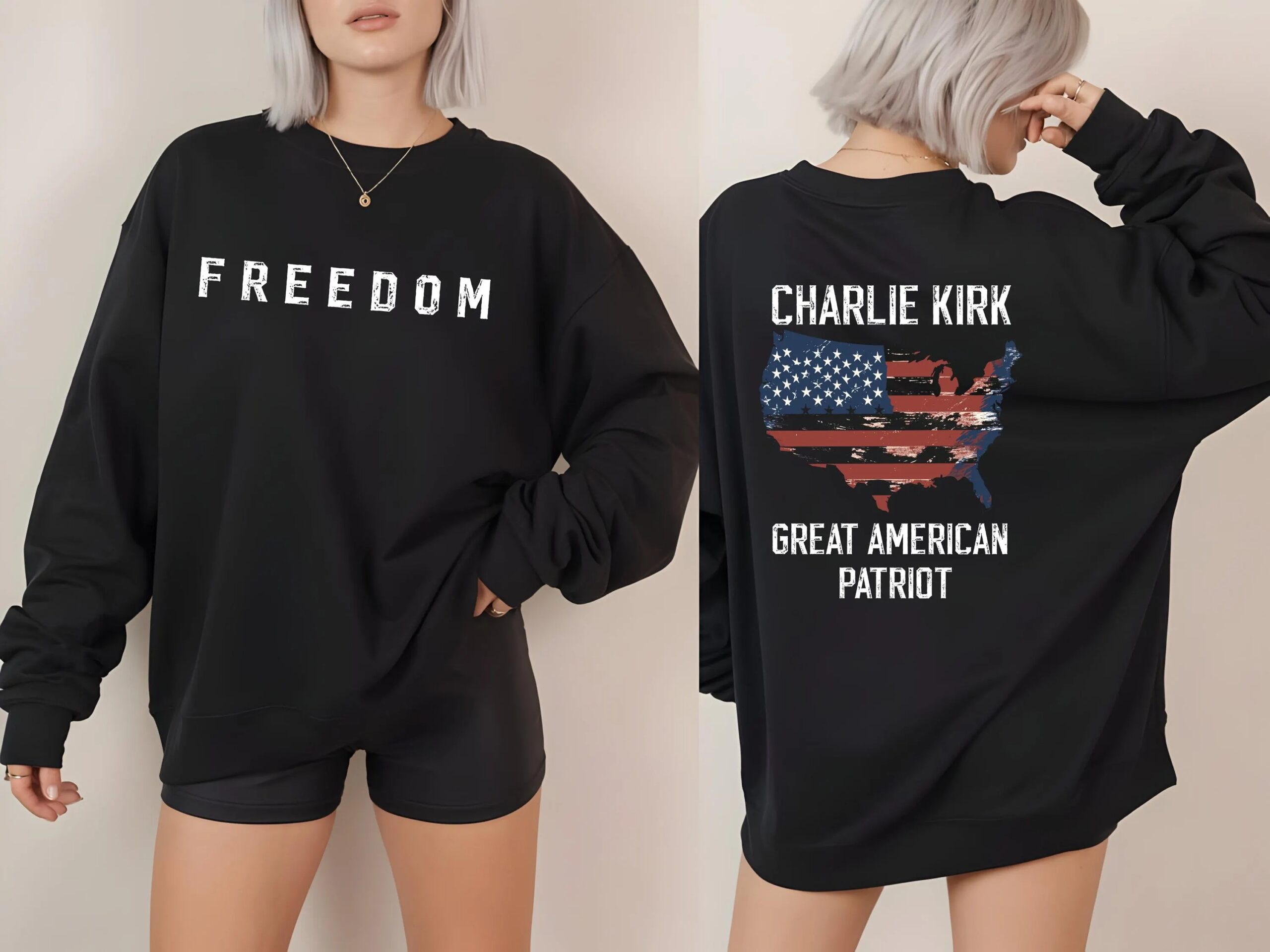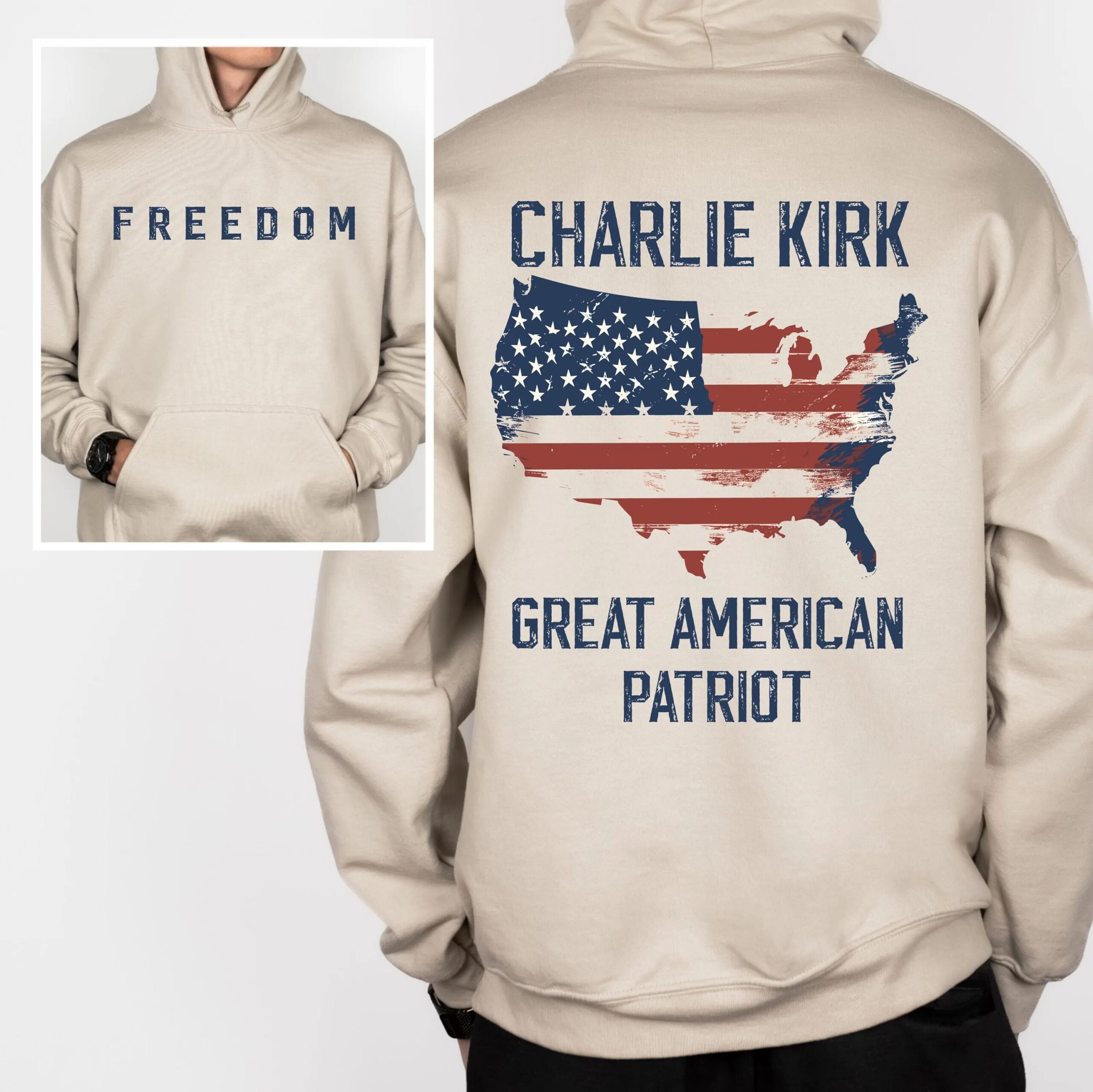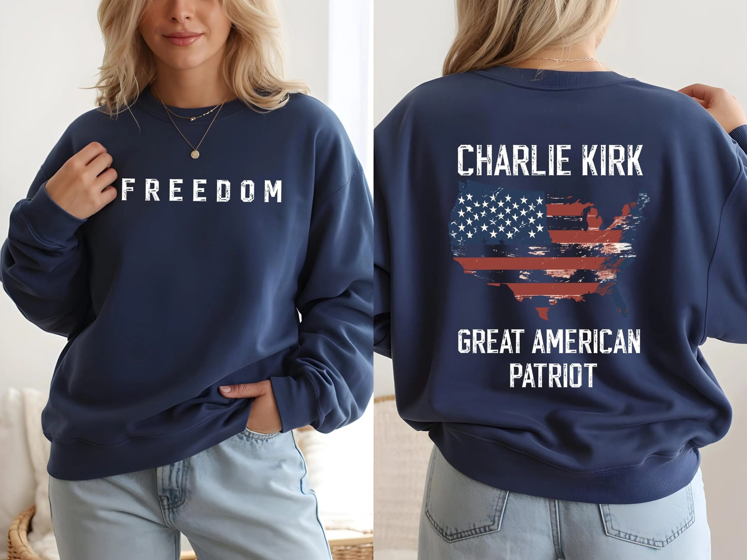 Patriotic Charlie Kirk Graphic Sweatshirt, T-Shirt & Hoodie, USA Freedom Design