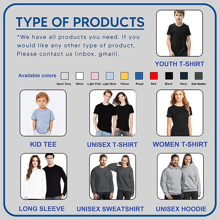 1/  Please note that the mockup images and product titles displayed are for illustrative purposes only. We offer a diverse range of custom products, and it is crucial for customers to select the appropriate shirt style based on their specific requirements.