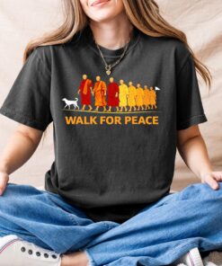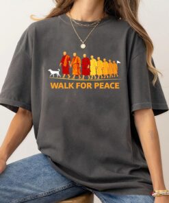Peaceful Monk Walking Art Shirt, Mindfulness Dog Tee, Zen T-Shirt, Dog Lover Gift