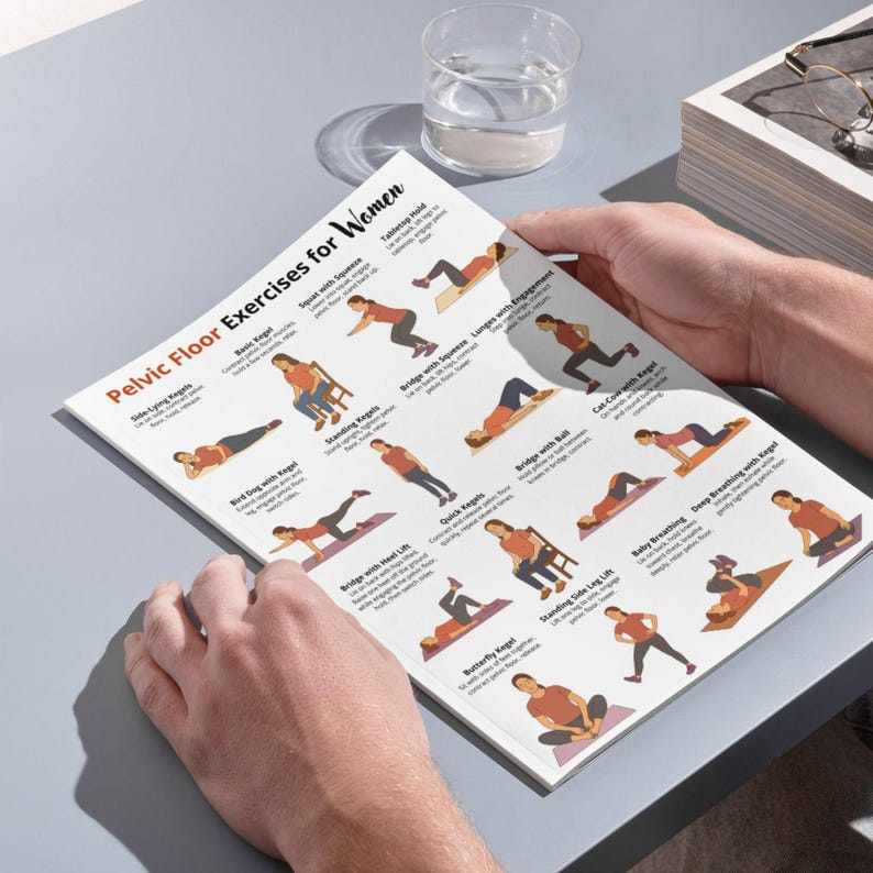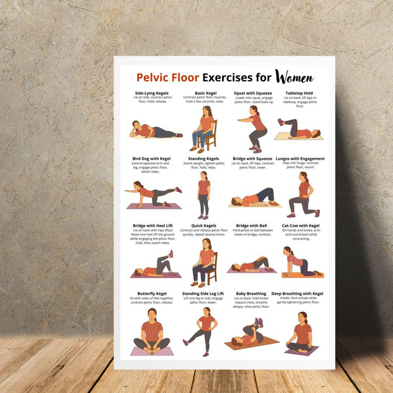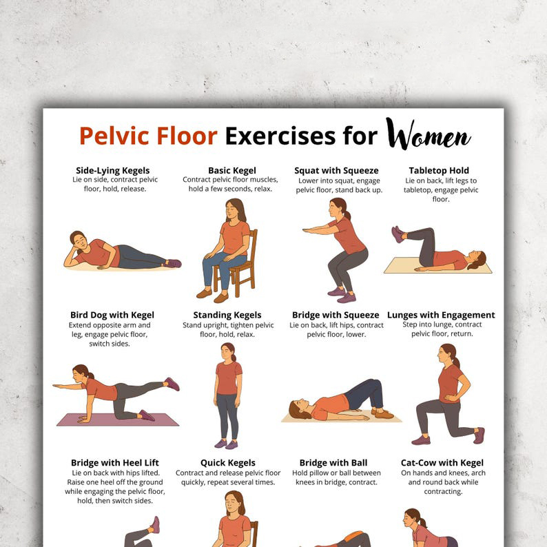 Pelvic Floor Exercises for Women, Kegel Workout Chart, Health & Wellness Art