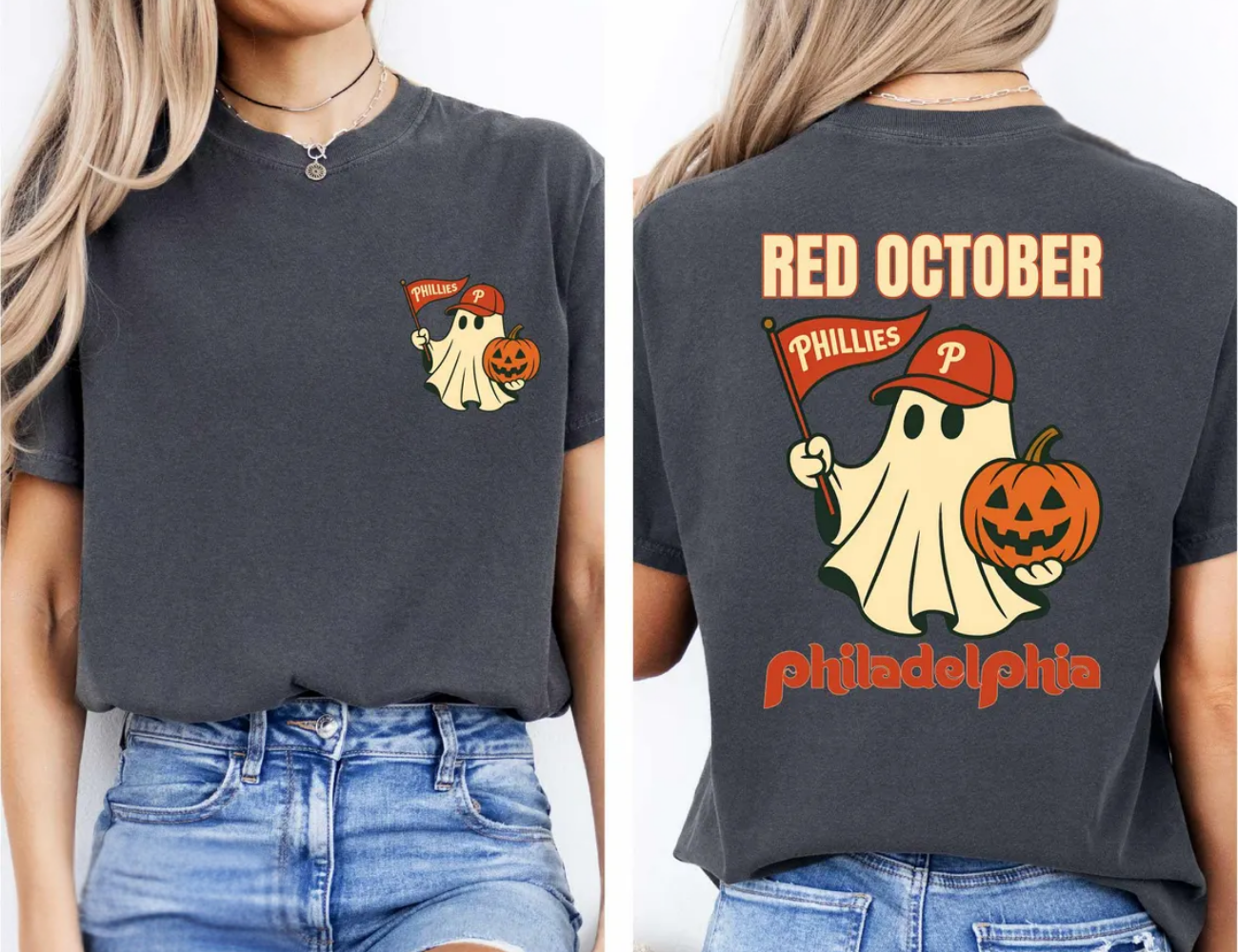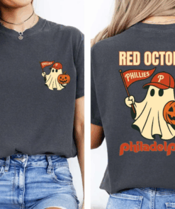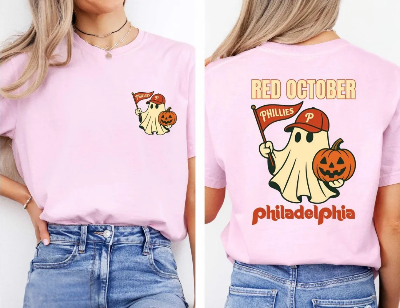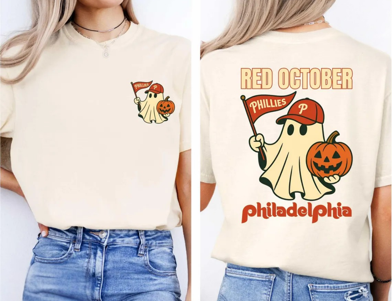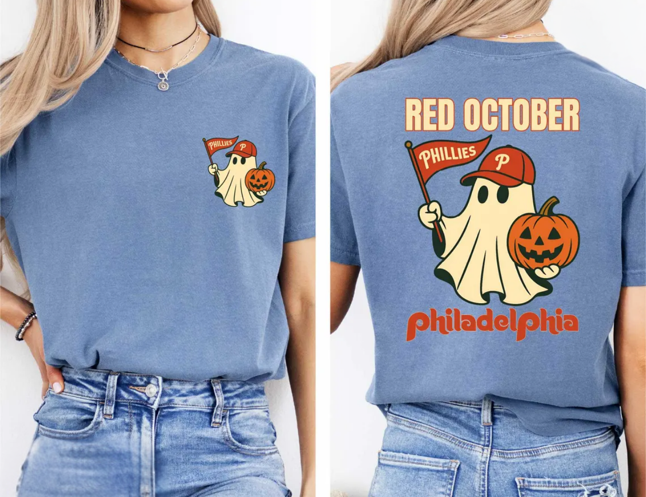 Phillies Halloween Ghost Shirt, Red October Baseball Tee, Halloween Phillies Fan T-Shirt, Ghost Sports Sweatshirt, Spooky Philadelphia Hoodie
