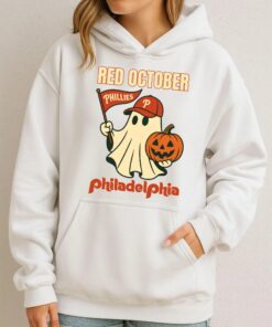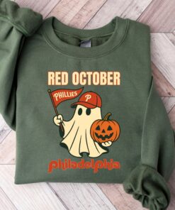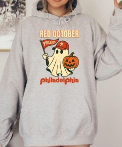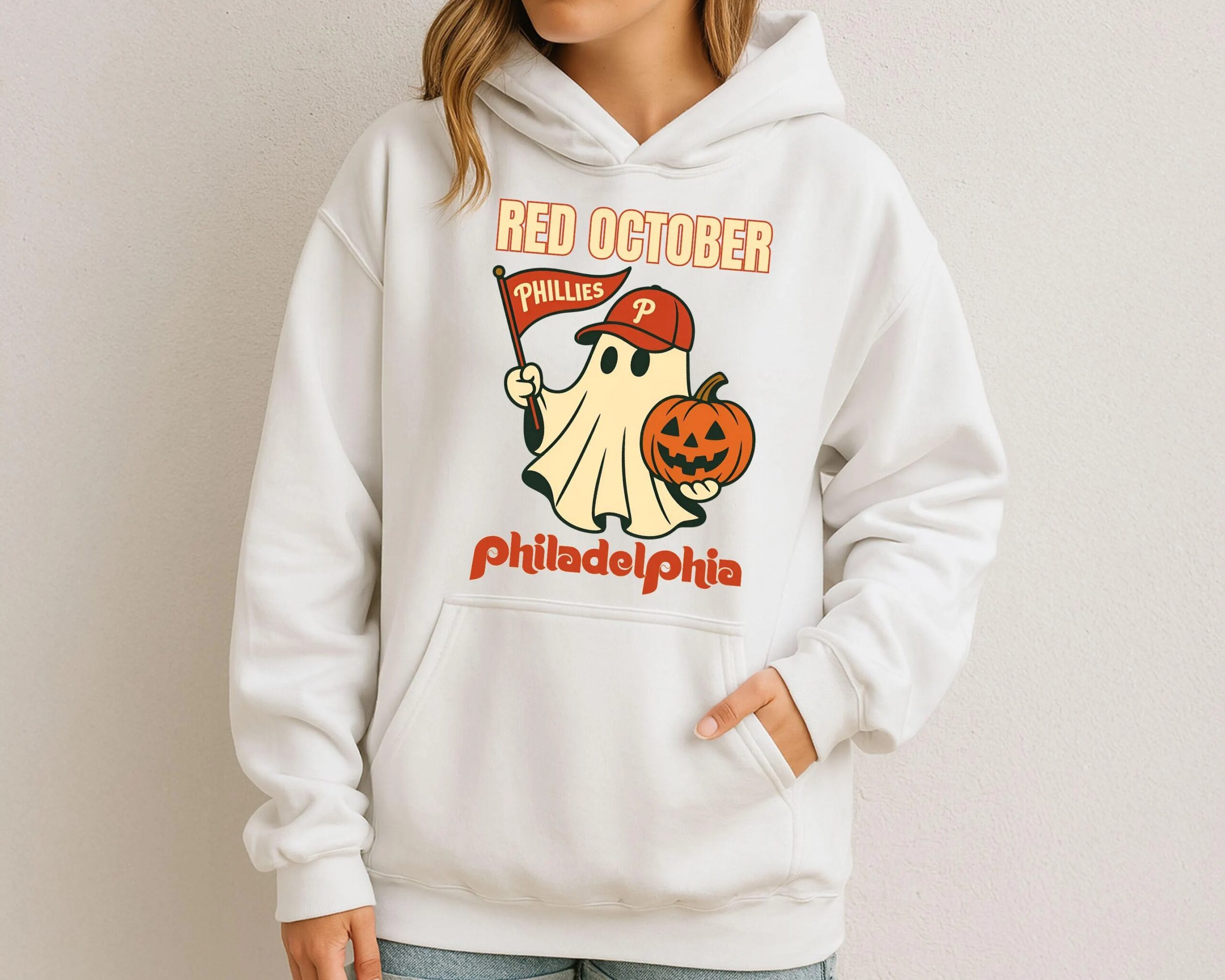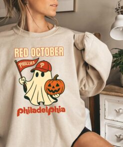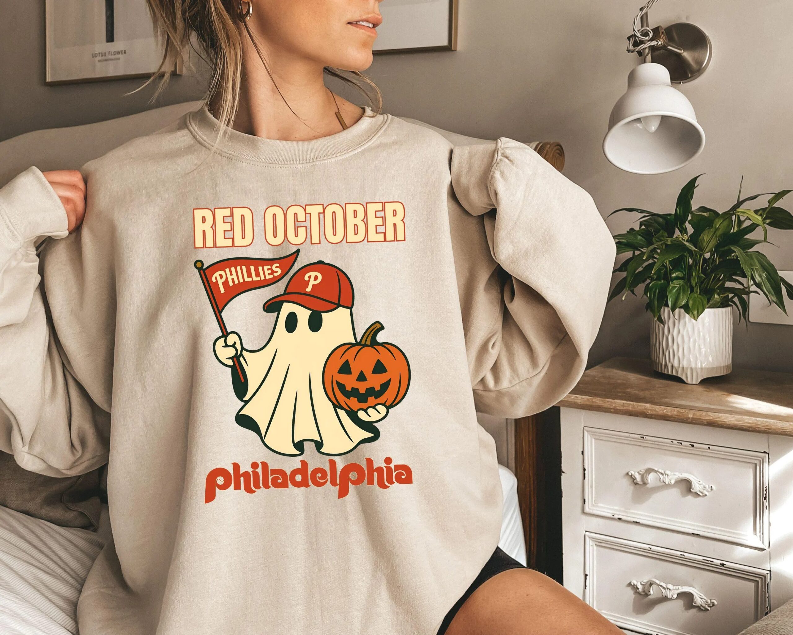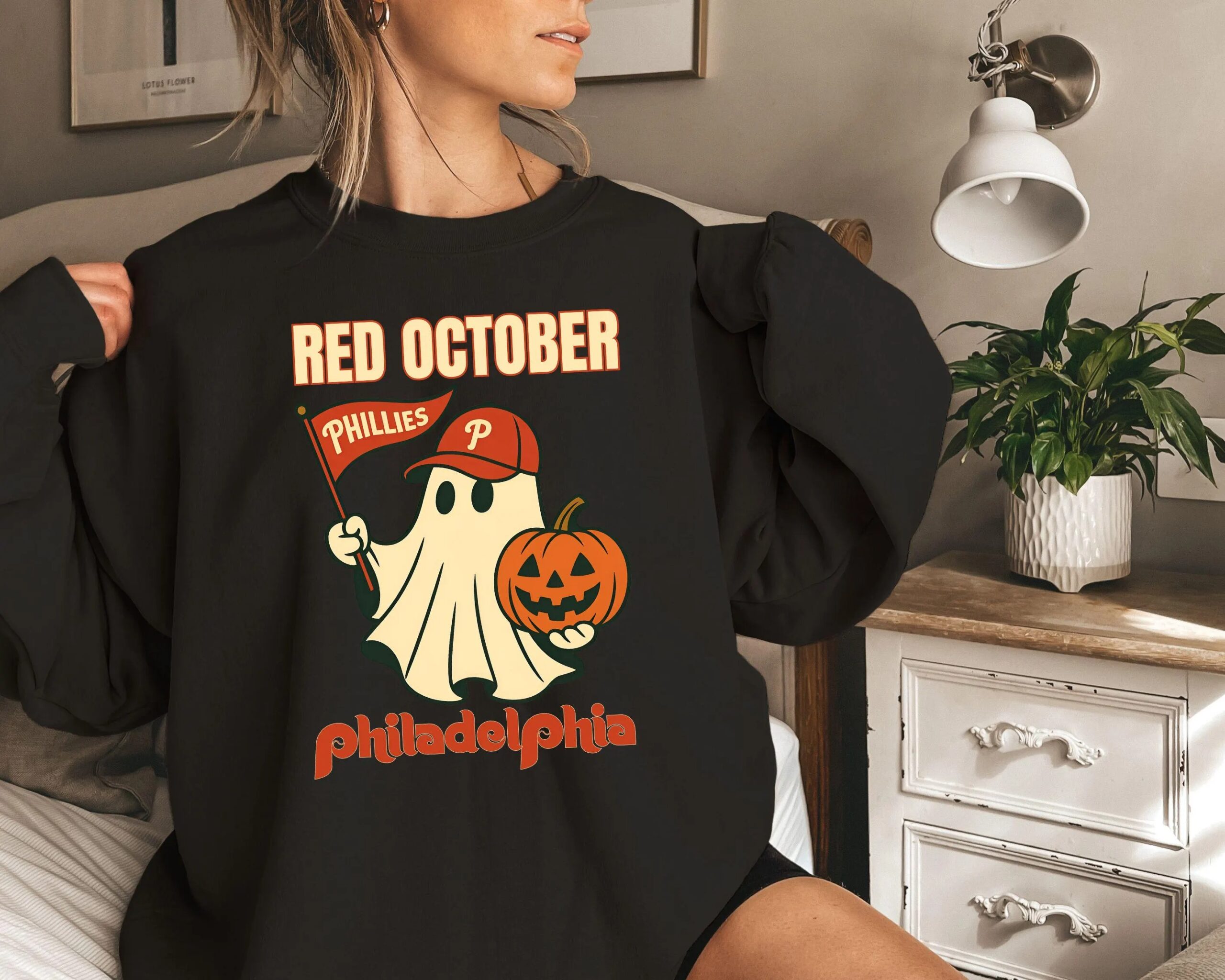 Phillies Red October Halloween Ghost Sweatshirt, Spooky Baseball Halloween Sweater, Philadelphia Phillies Crewneck