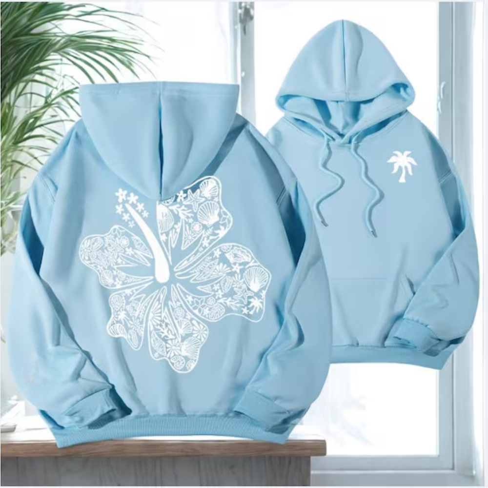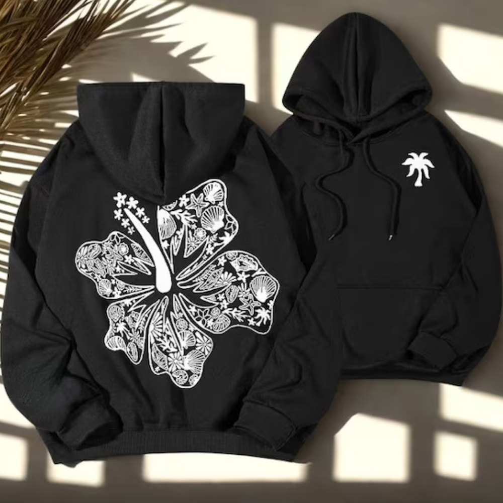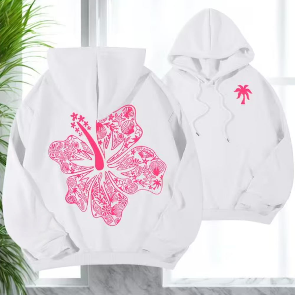 Pink Hibiscus Flower Hoodie, Funny Sports Sweatshirt, Cozy Pullover Gift, Casual Top