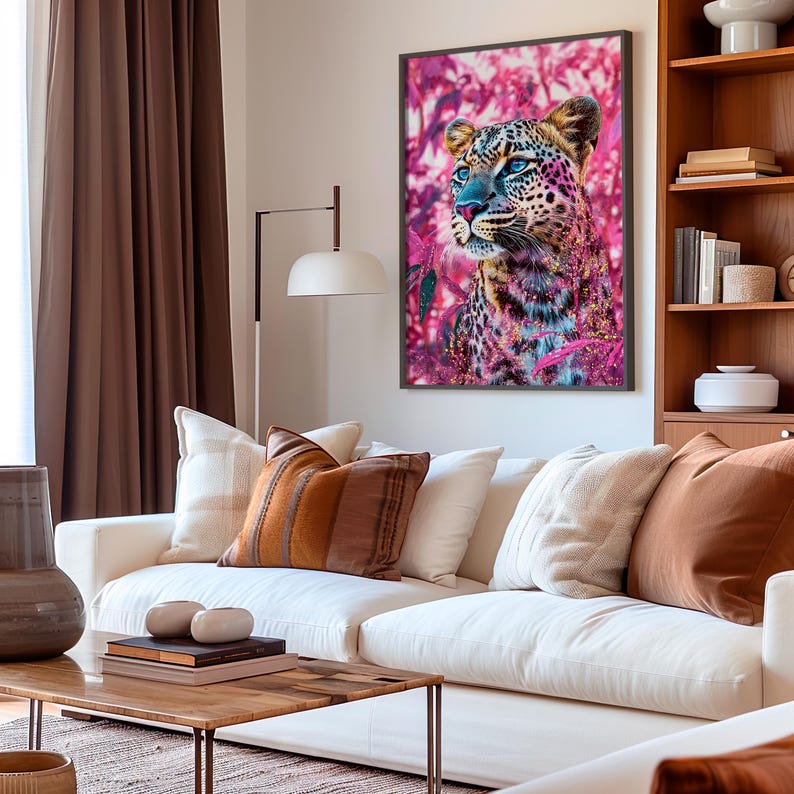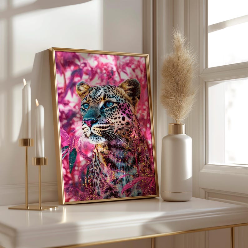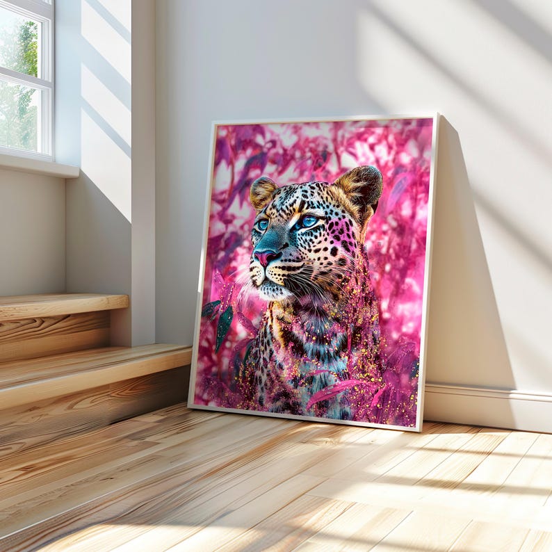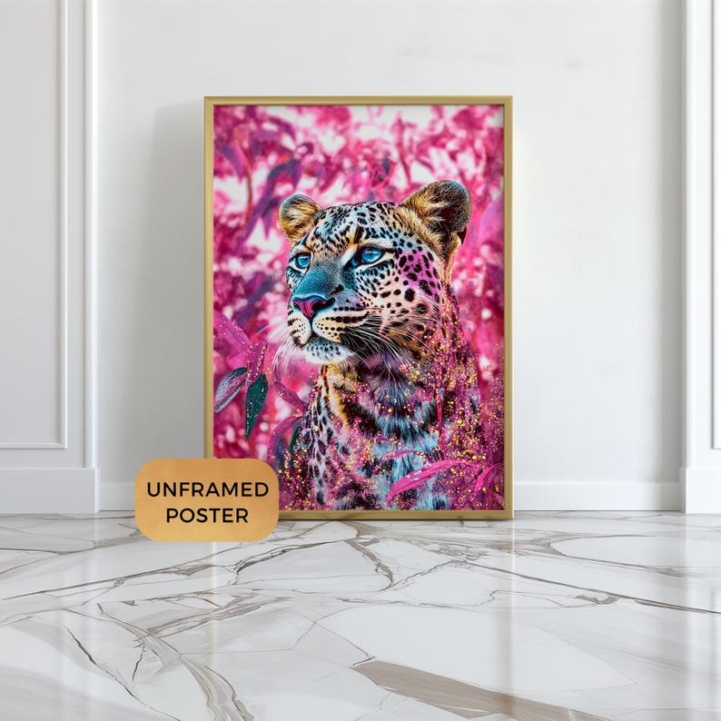 Pink Leopard Wall Art,Wall Art Prints Glitter Cheetah Premium Poster, Modern Neon Animal Prints, Abstract Wall Art, Vibrant Wild Cat Artwork