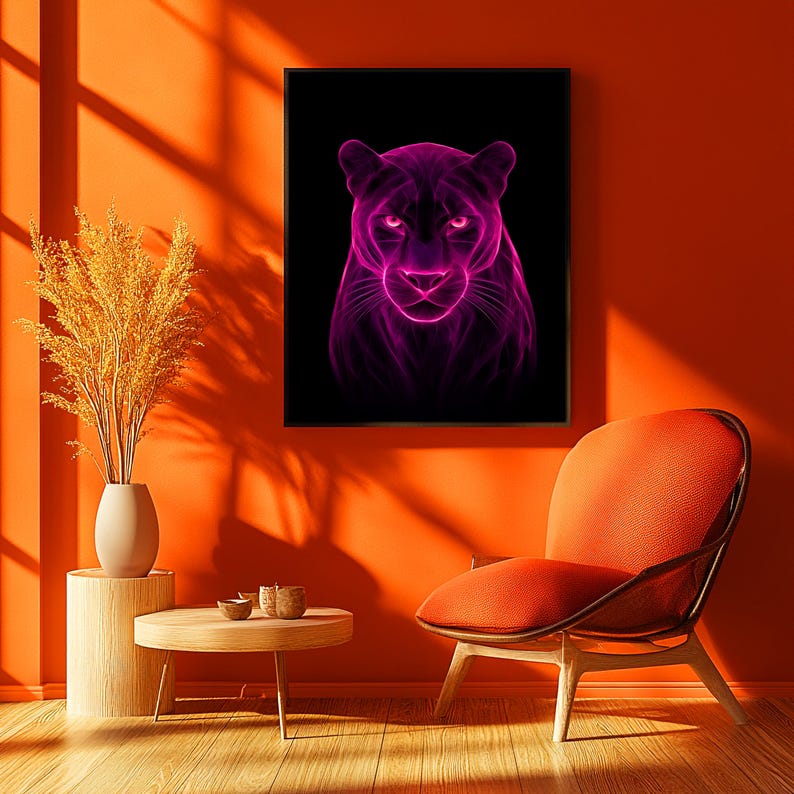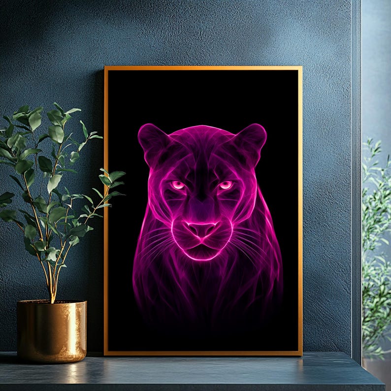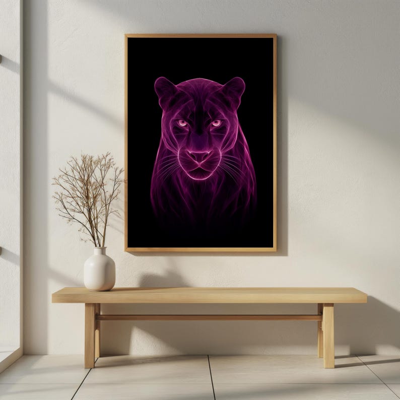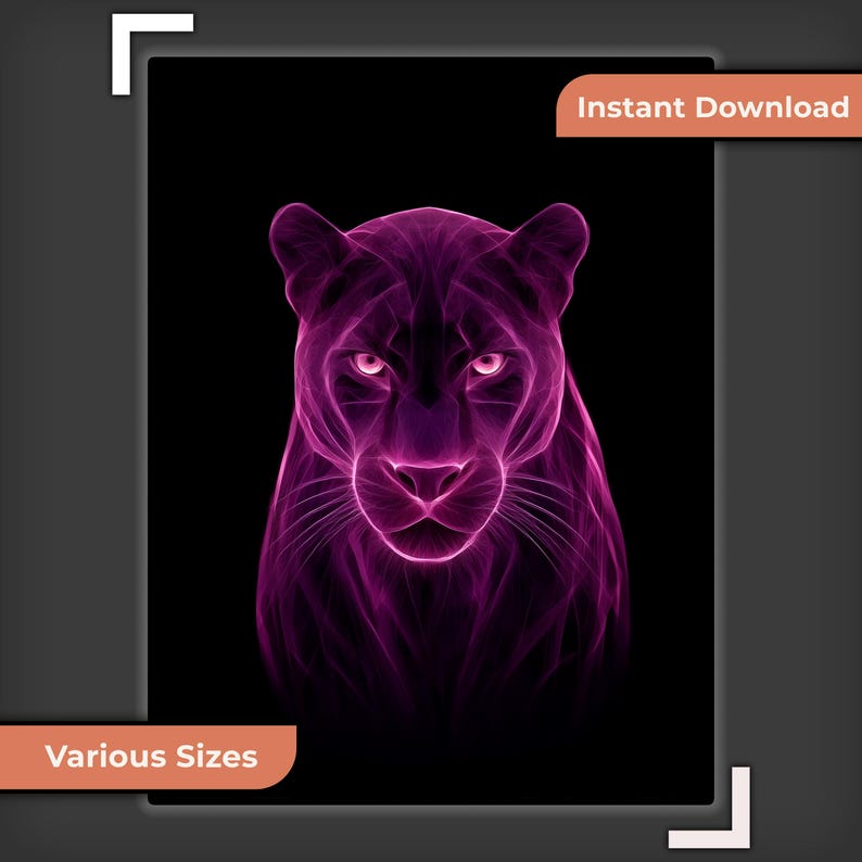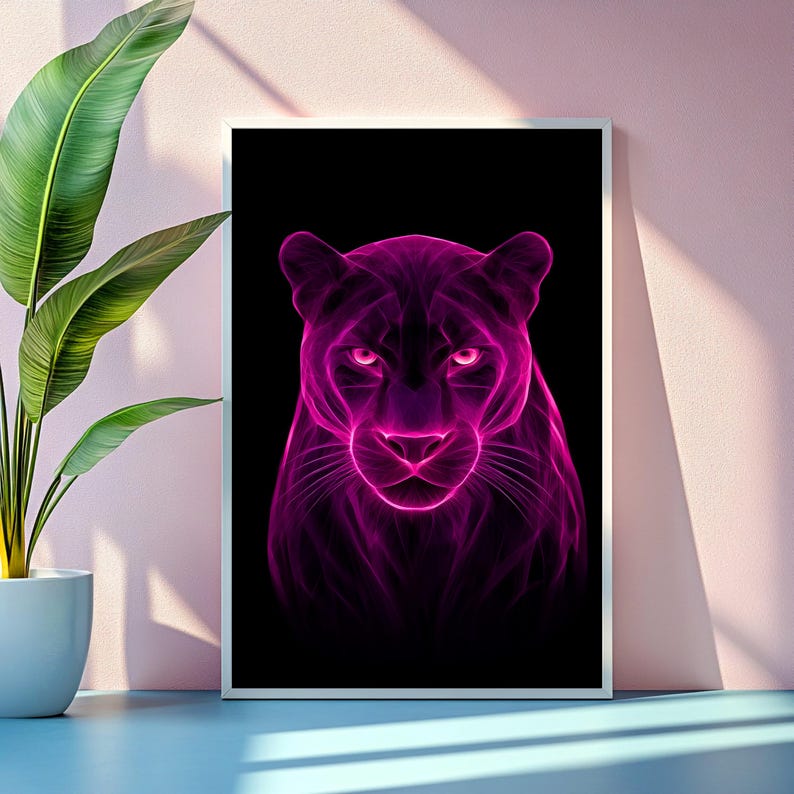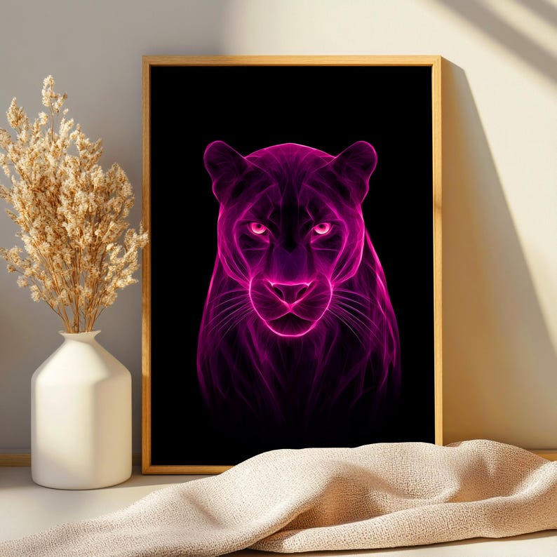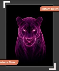 Be the first to review “Pink Neon Panther Digital Print, Purple Abstract Glow Art Moody Wall Decor”