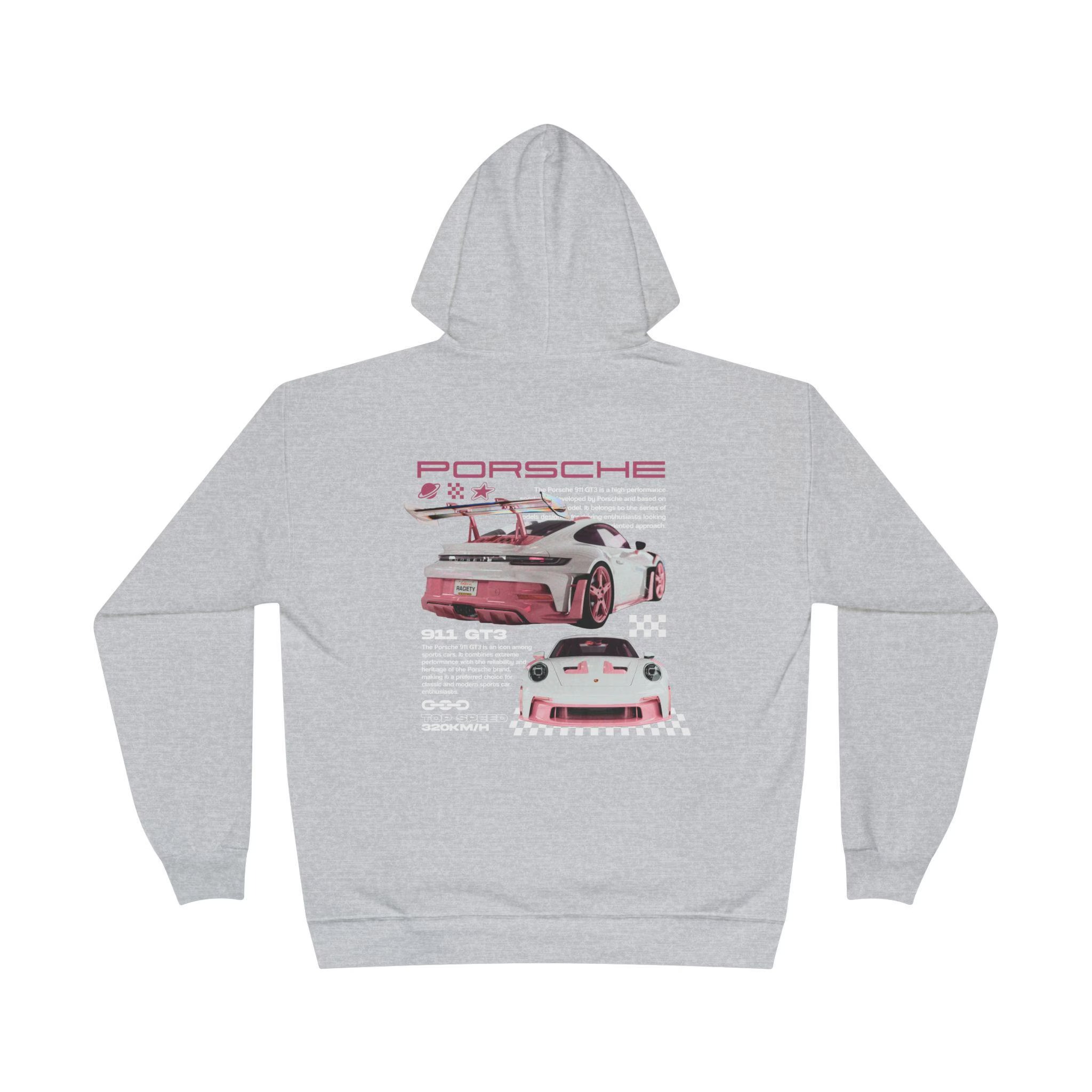 Pink Porsche Graphic Hoodie, Vintage Race Car Aesthetic
