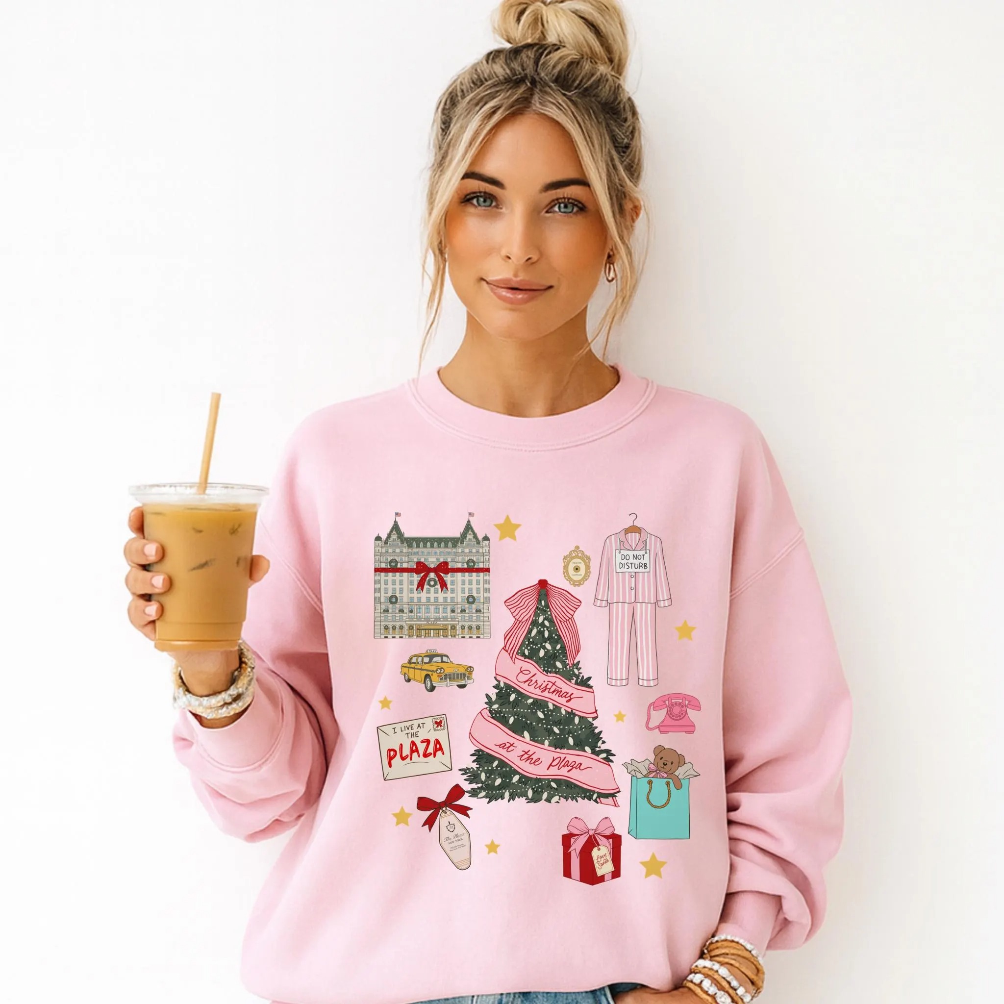 Plaza Christmas Sweatshirt, Christmas in New York Shirt, Women’s Trendy Holiday crewneck, Gift for Her, Oversized Holiday Graphic Tee