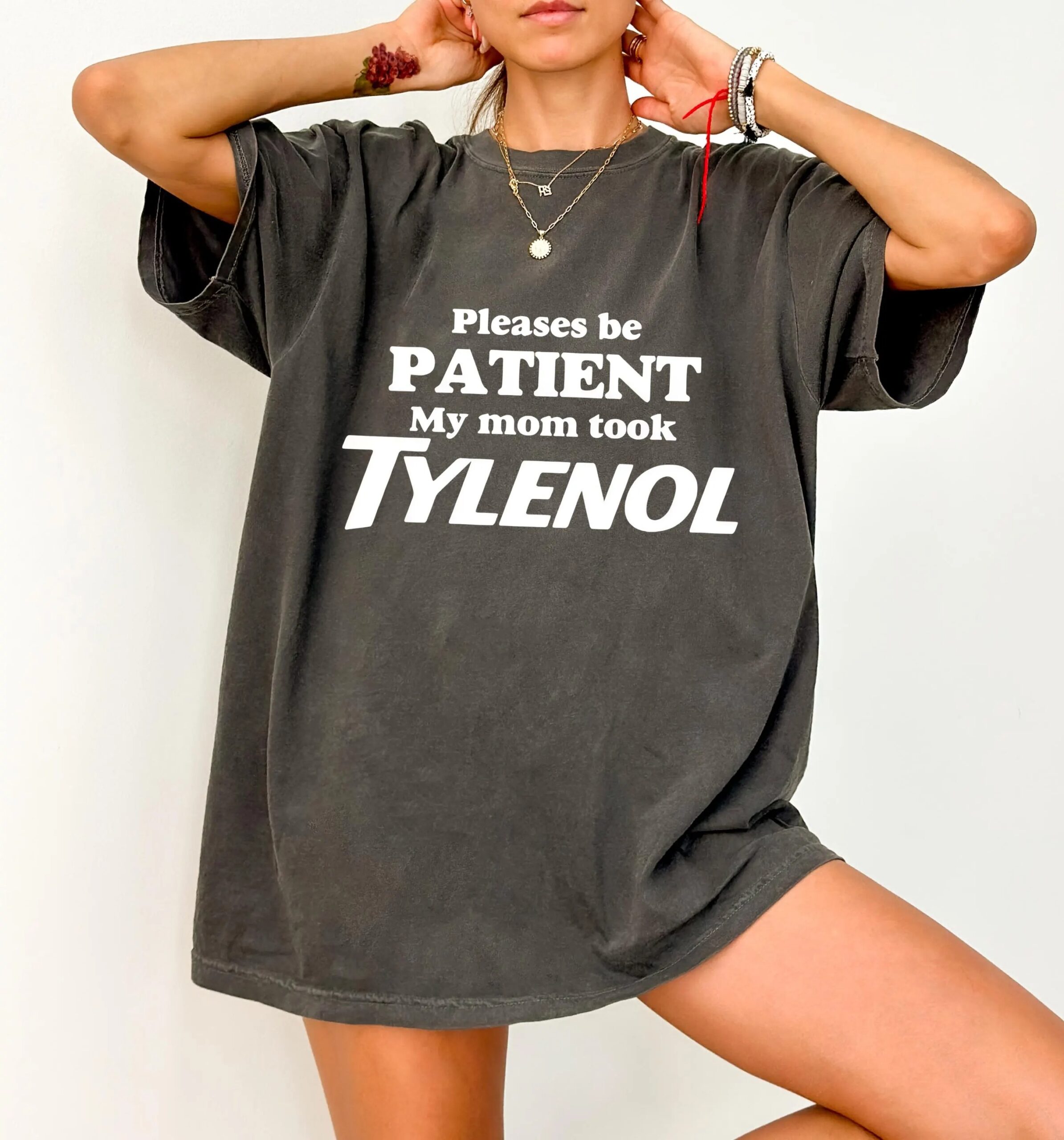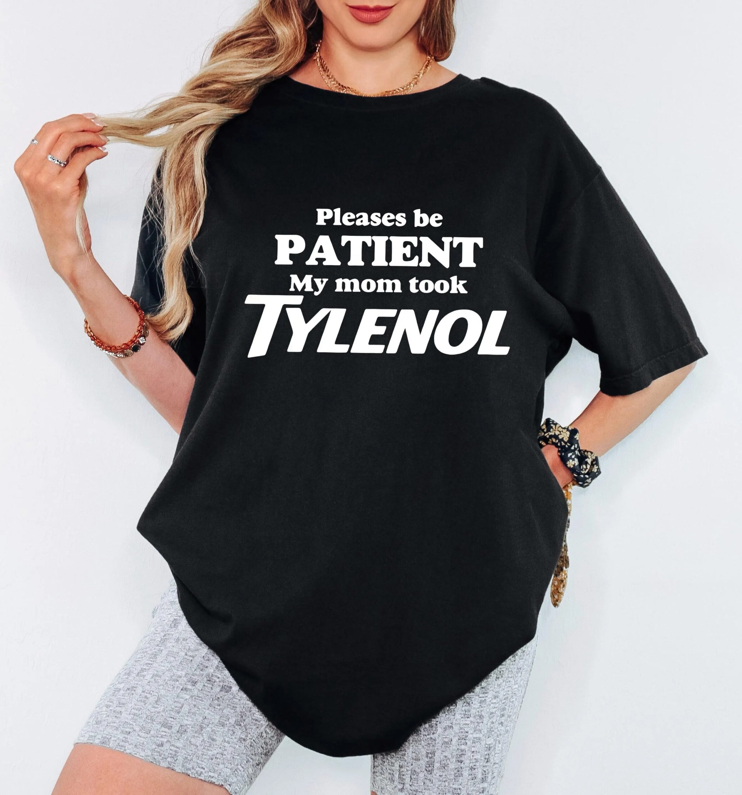 Please Be Patient, My Mom Took Tylenol, Tylenol Joke Tee, Funny Mom Shirt, Dark Humor Top, Sarcasm GAG T-Shirt