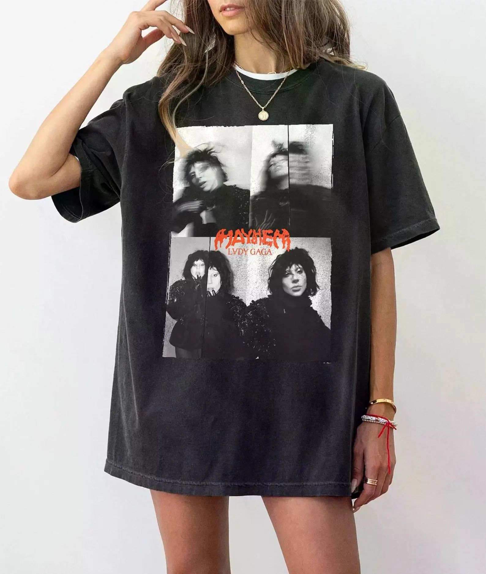 Pop Icon Inspired Shirt, The Mayhem Album Inspired Tee, Retro Concert Style T-Shirt, Vintage Pop Music Fan Top, Unisex Graphic Gift Gaga Fans