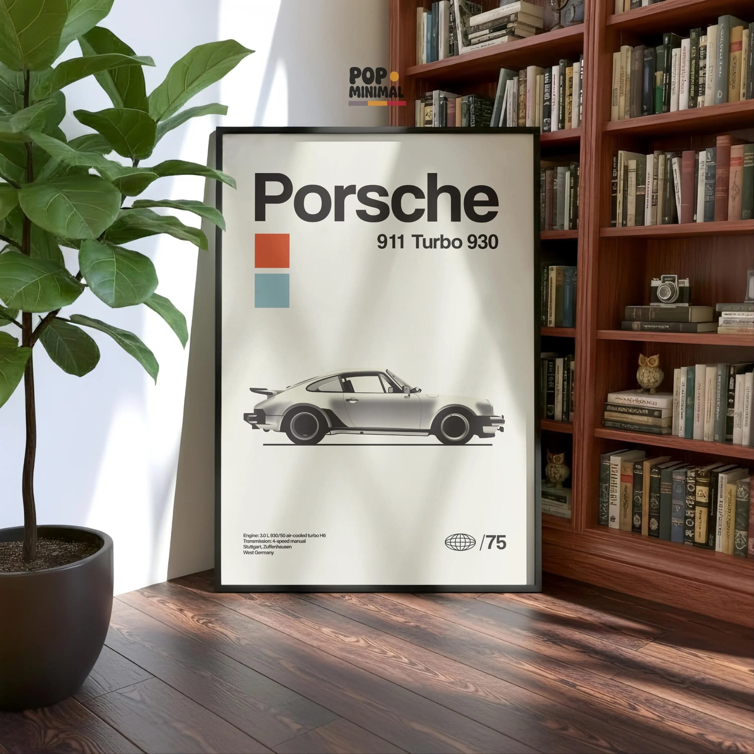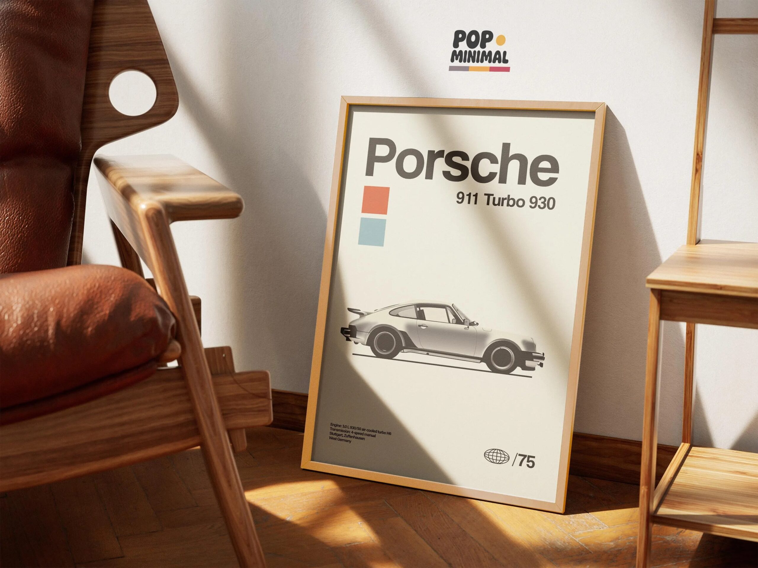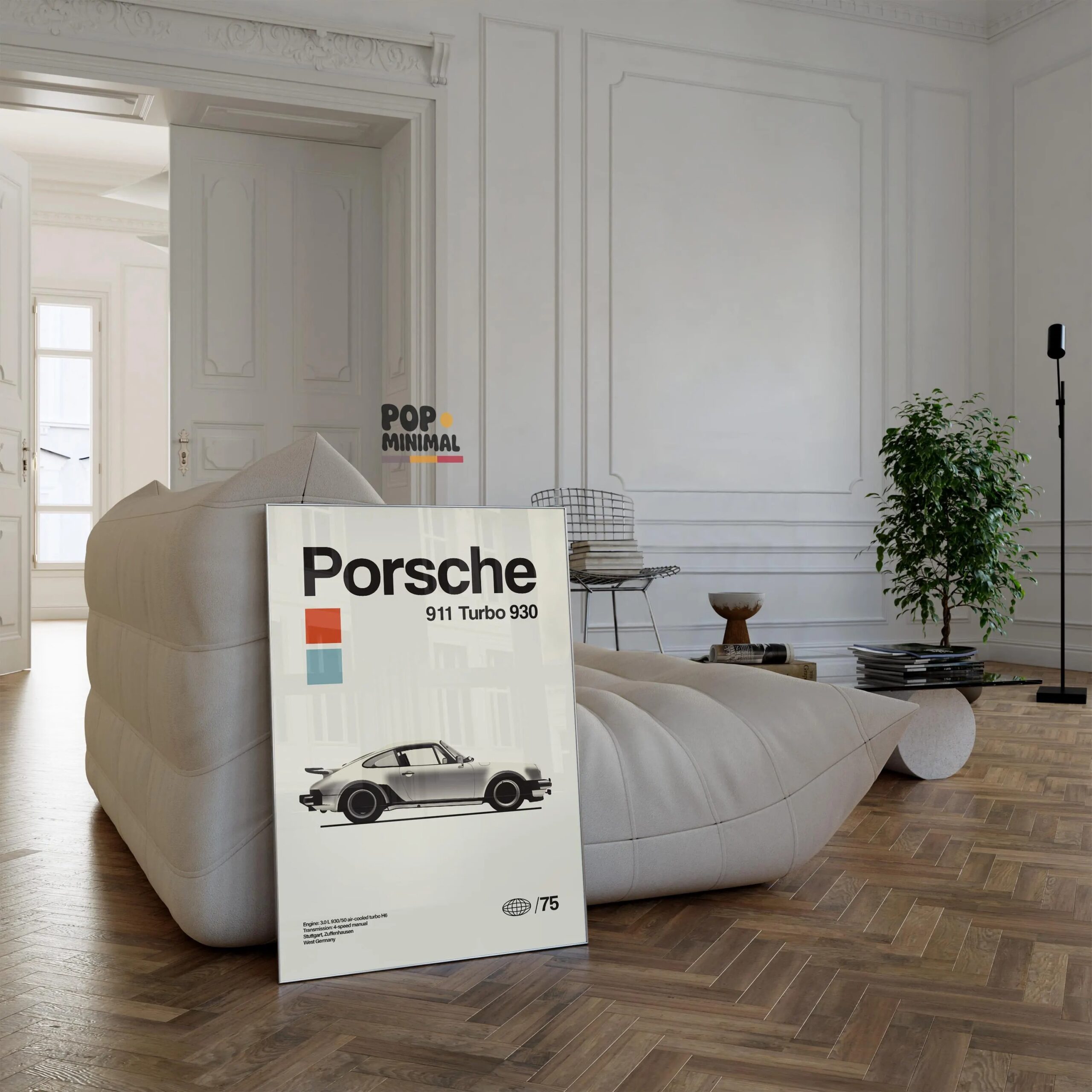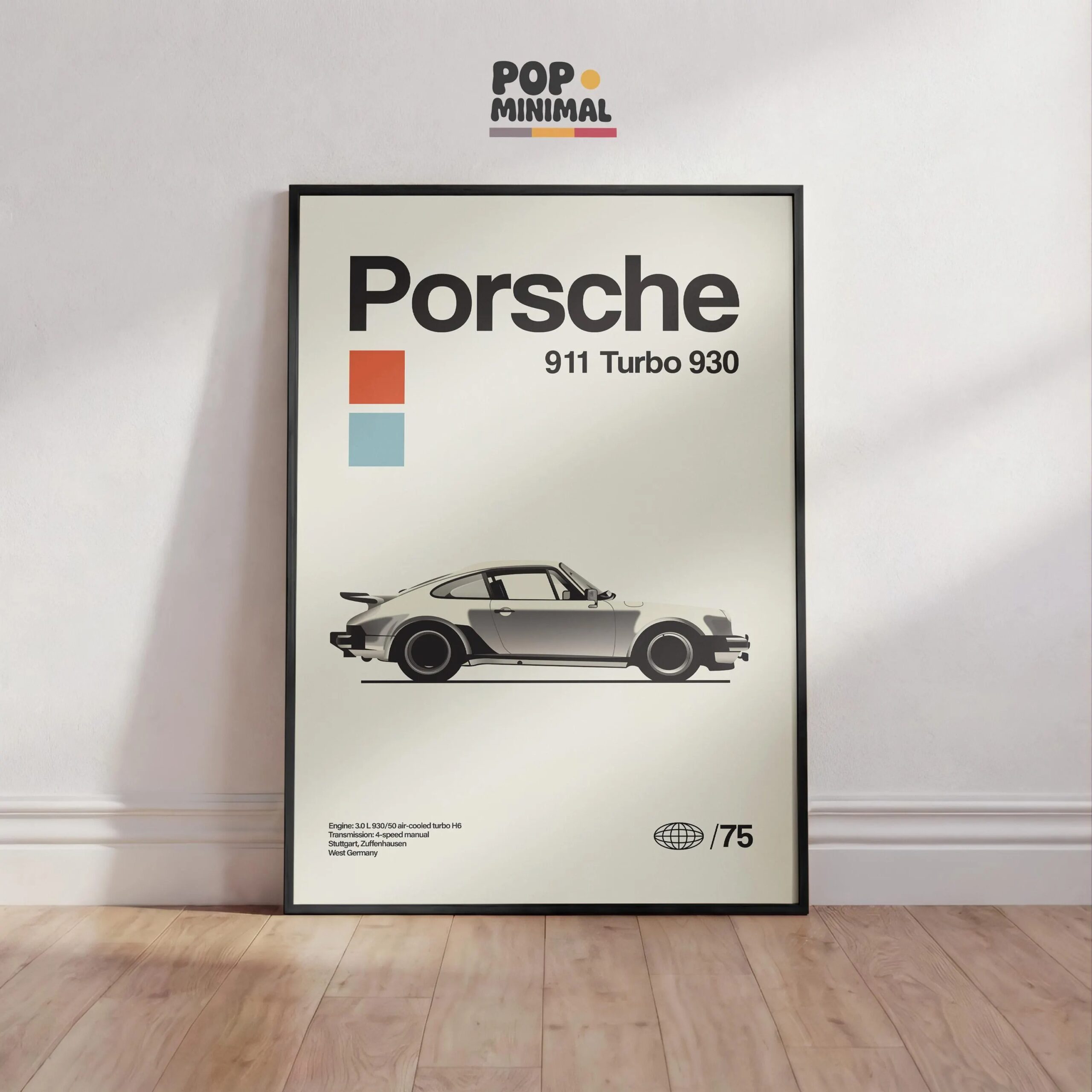 Porsche 911 Turbo 930 Poster Print Minimalist Car Print Decor