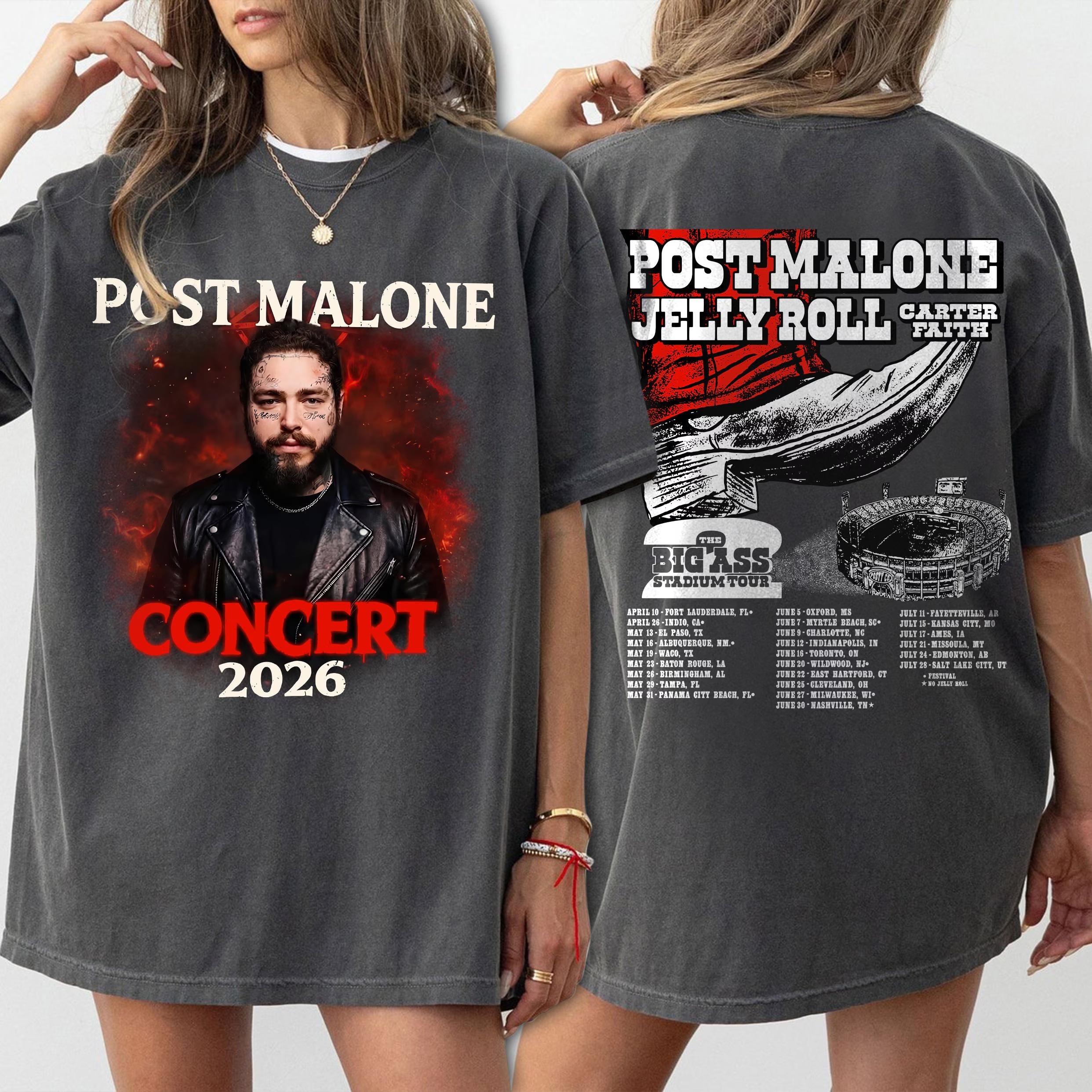 Post Malone Jelly Roll Big Ass Stadium Tour 2026 Tour Shirt, Posty Merch Sweatshirt, Posty Shirt, Country Music Tour, Comfort Color Shirt