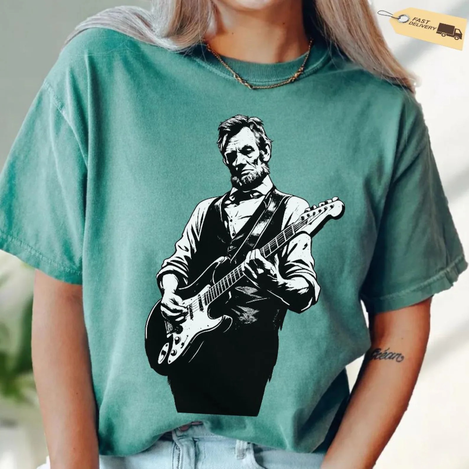 President Abraham Lincoln Playing Guitar Abe Lincoln Design T-Shirt