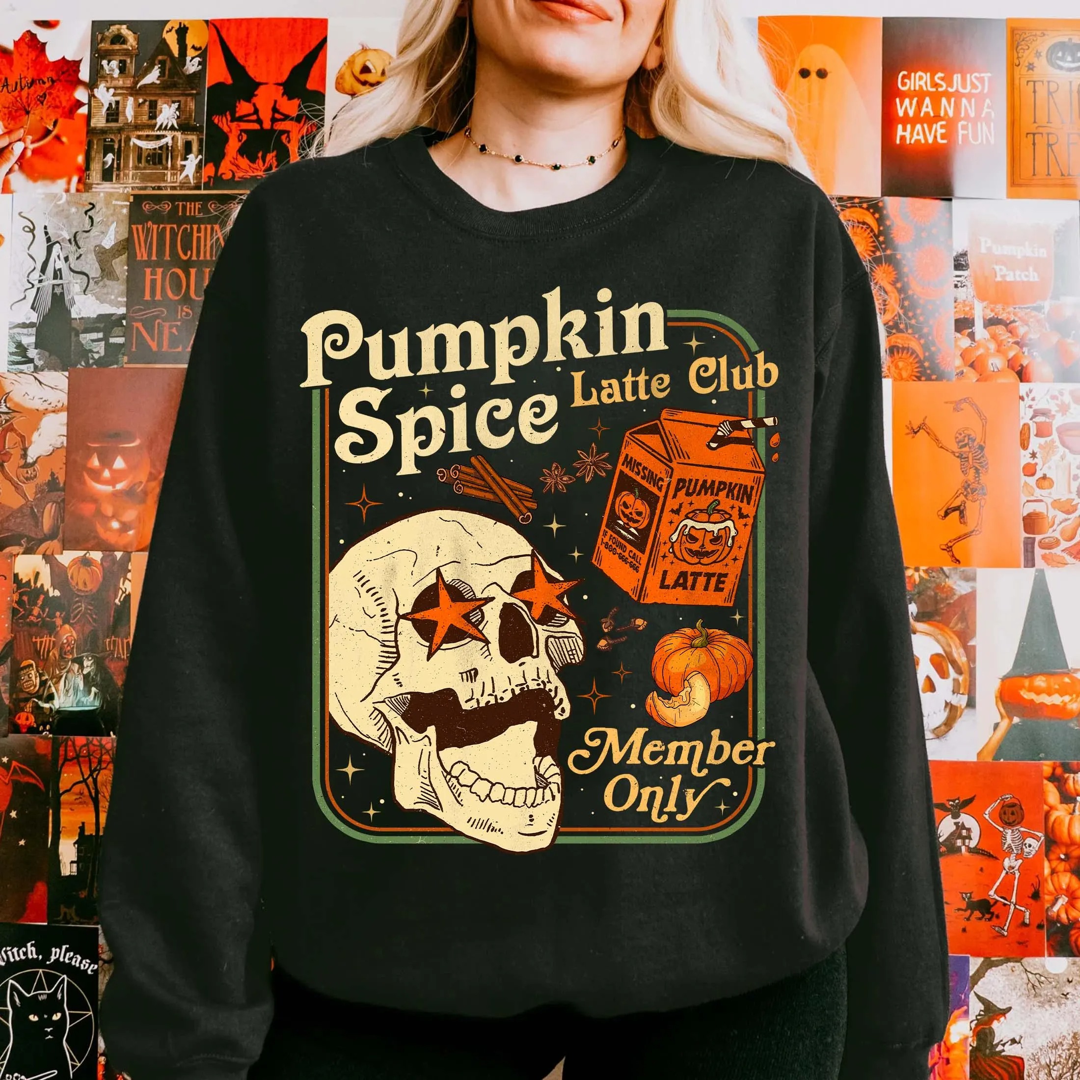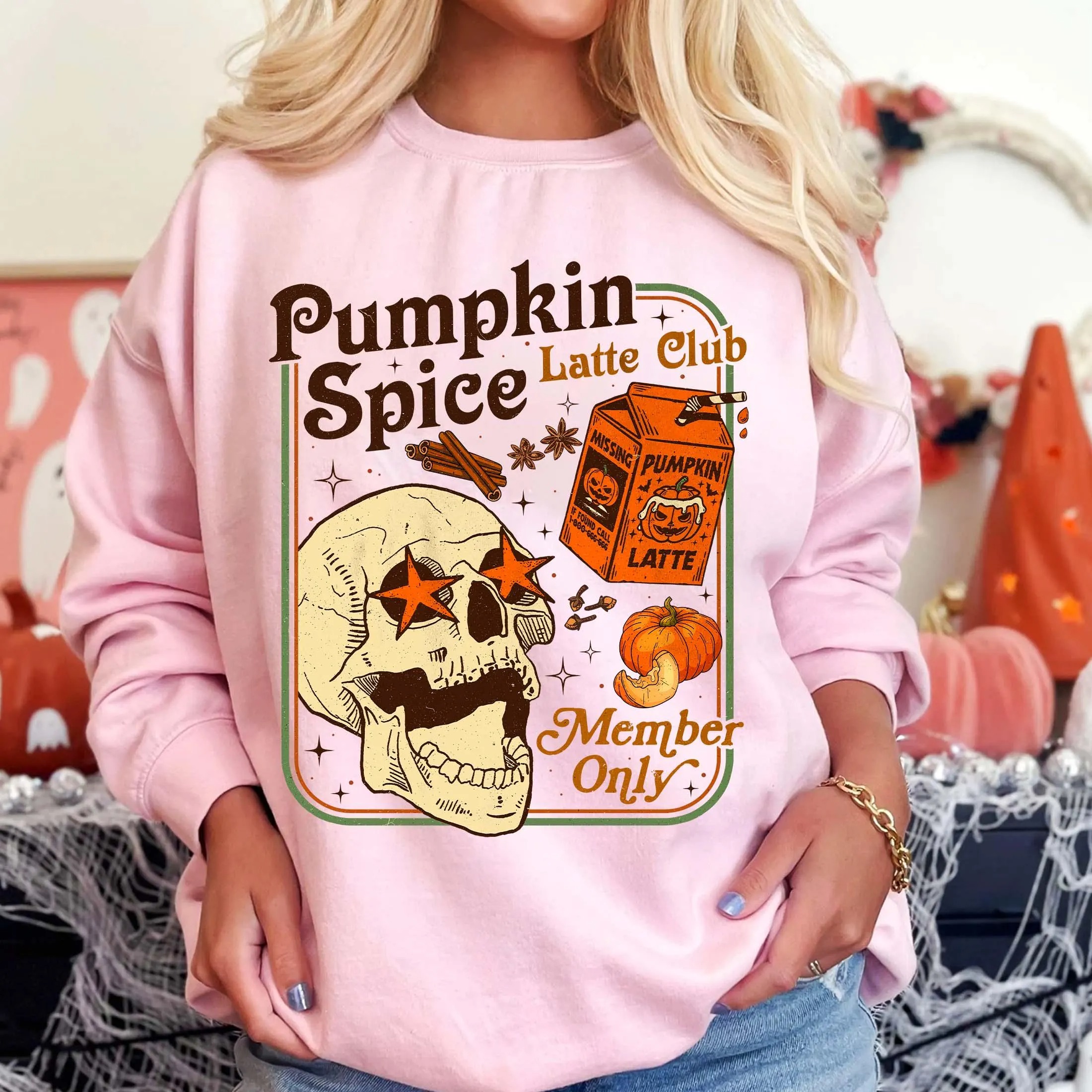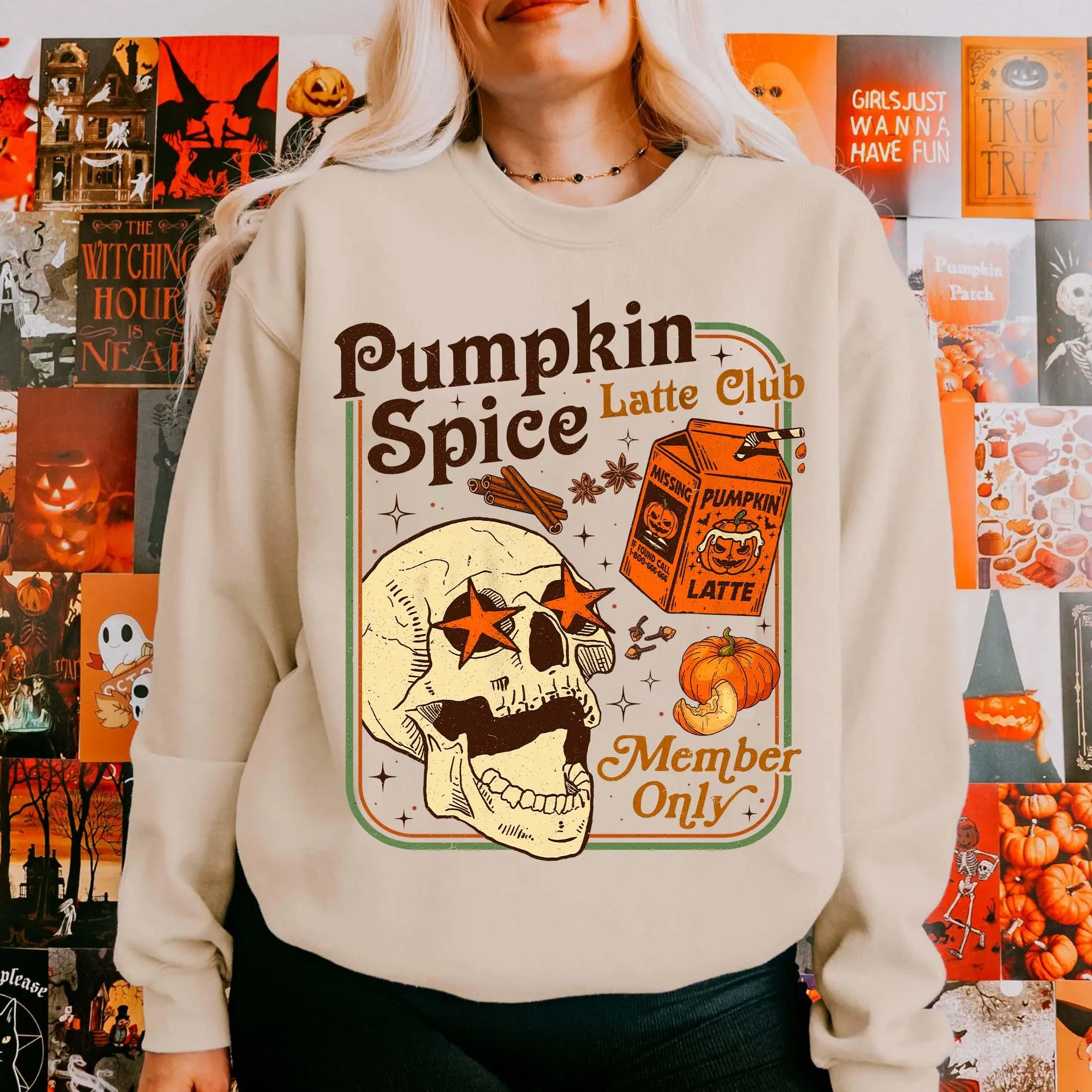 Pumpkin Spice Halloween Sweatshirt, Pumpkin Latte Club Sweater, Fall Shirt, Funny Halloween Gift, Spooky Season Sweater-Shirt