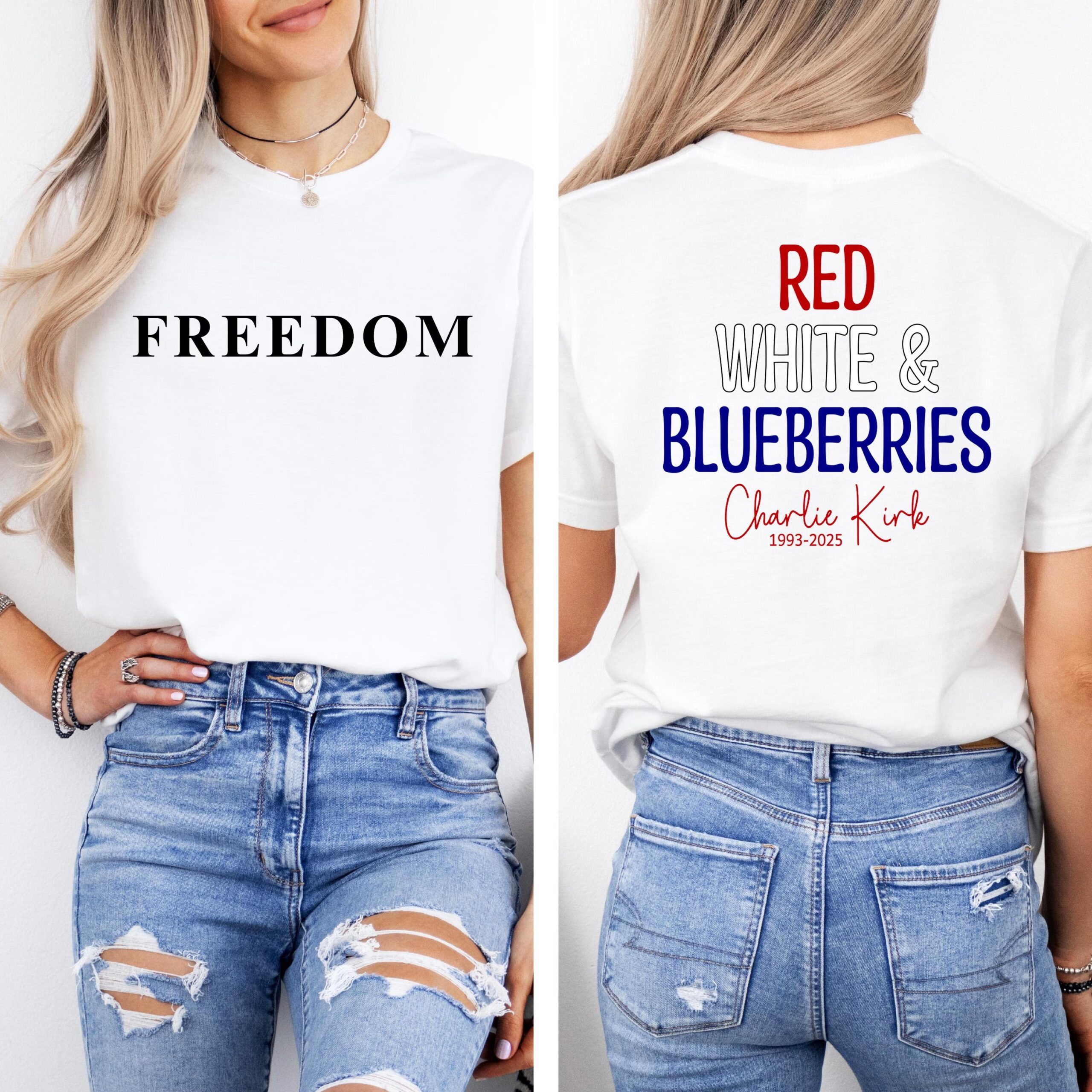 Red White and Blueberries Charlie Kirk T-Shirt, Charlie Kirk 1993-2025 Freedom Top, Charlie Kirk Shirt, Justice For Charlie Kirk Tee